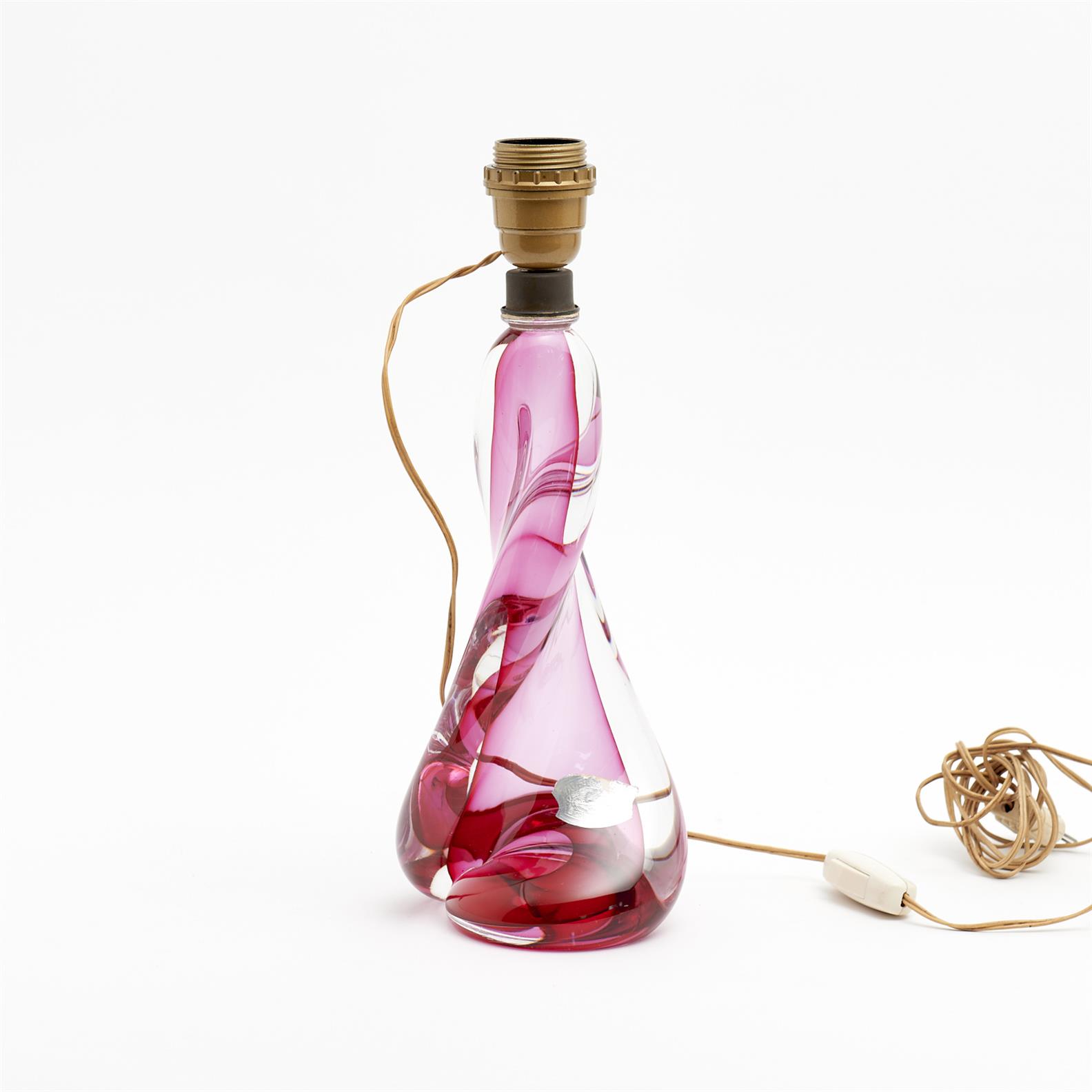 A VAL ST LAMBERT PINK SWIRL GLASS LAMP BASE WITH ORIGINAL STICKER H.34CM, LEONARD JOEL DELIVERY SIZE: MEDIUM