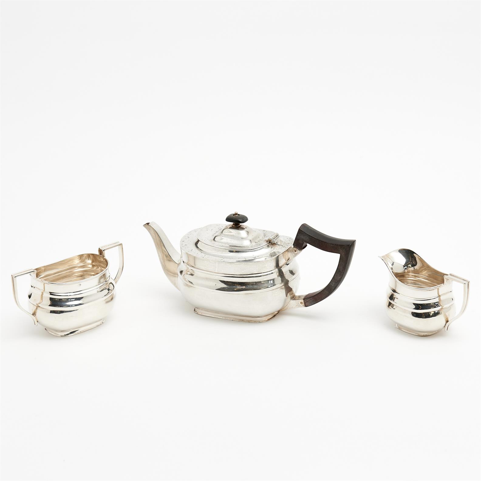 AN ENGLISH STERLING SILVER THRFEE PIECE BACHELOR TEA SET 462G (TOTAL WEIGHT) H.11CM (TALLEST), LEONARD JOEL DELIVERY SIZE: MEDIUM