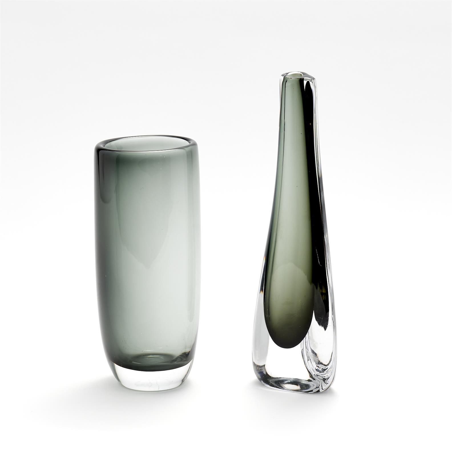 TWO ORREFORS CASED GREY GLASS VASES H.23.5CM (TALLEST), LEONARD JOEL DELIVERY SIZE: MEDIUM