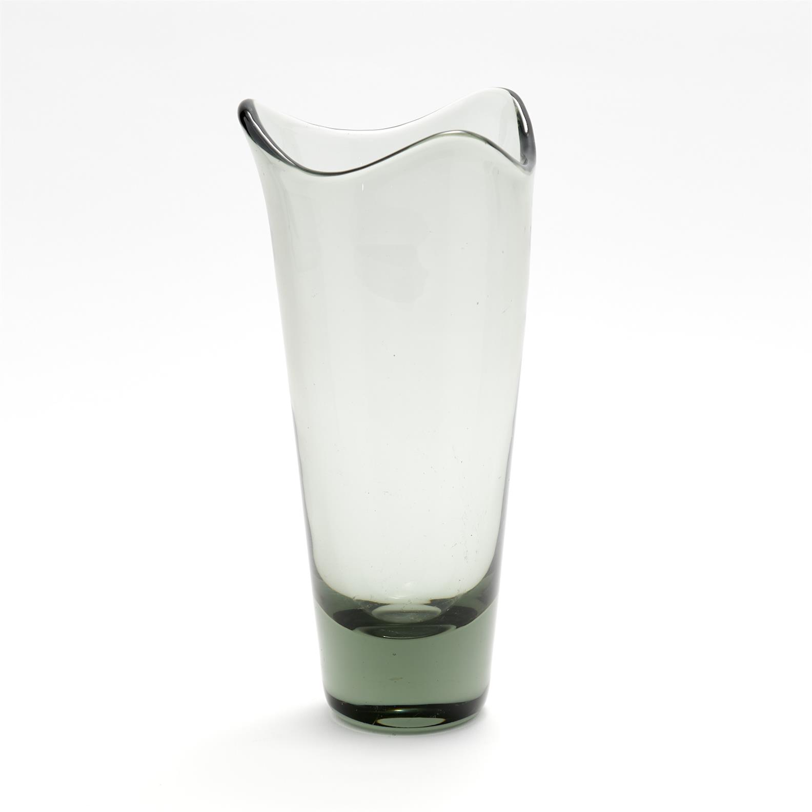 A HOLMEGAARD PER LUTKIN TAPERING GREY GLASS VASE WITH WAVY RIM H.25CM, LEONARD JOEL DELIVERY SIZE: MEDIUM