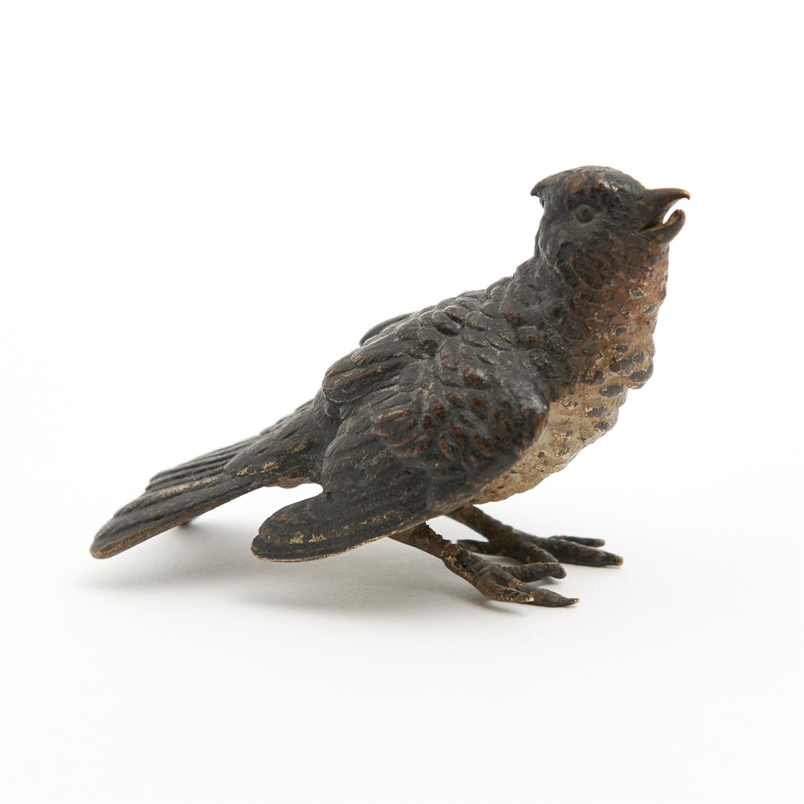A SMALL ANTIQUE AUSTRIAN COLD PAINTED BRONZE BIRD FIGURE (A/F) POSSIBLY BERGMAN W.8CM, LEONARD JOEL DELIVERY SIZE: SMALL