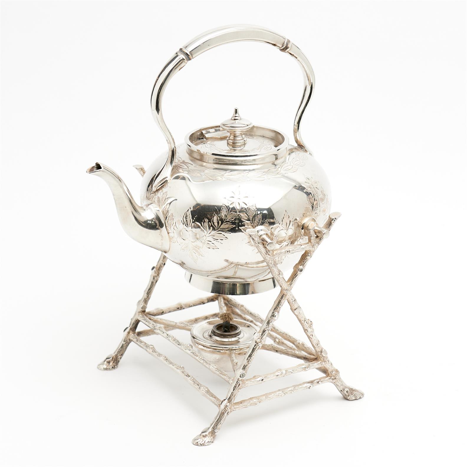 A VICTORIAN SILVERPLATED SPIRIT KETTLE ON STAND H.34CM, LEONARD JOEL DELIVERY SIZE: MEDIUM