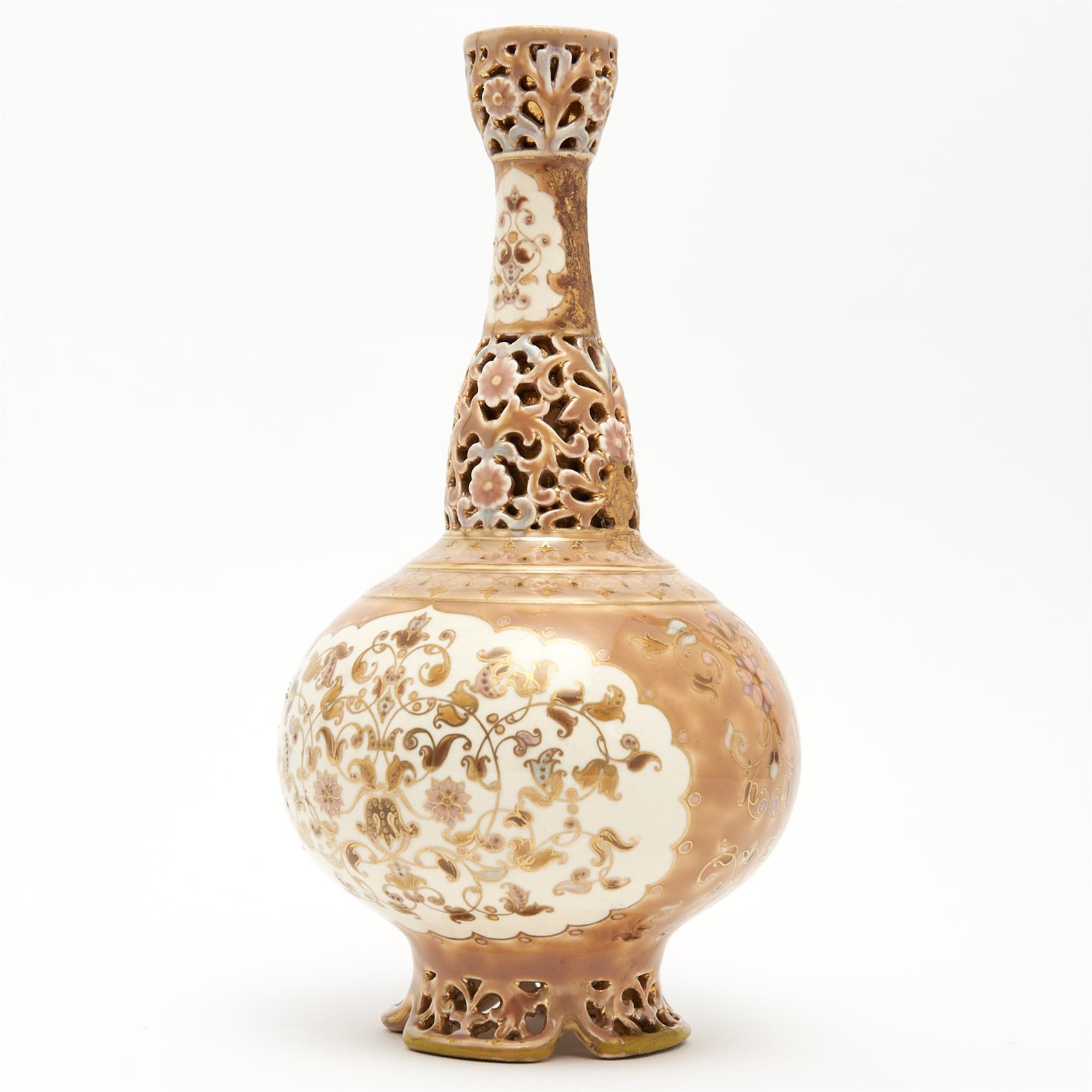 A ZSOLNAY PECS RETICULATED PORCELAIN VASE H.25.5CM, LEONARD JOEL DELIVERY SIZE: MEDIUM
