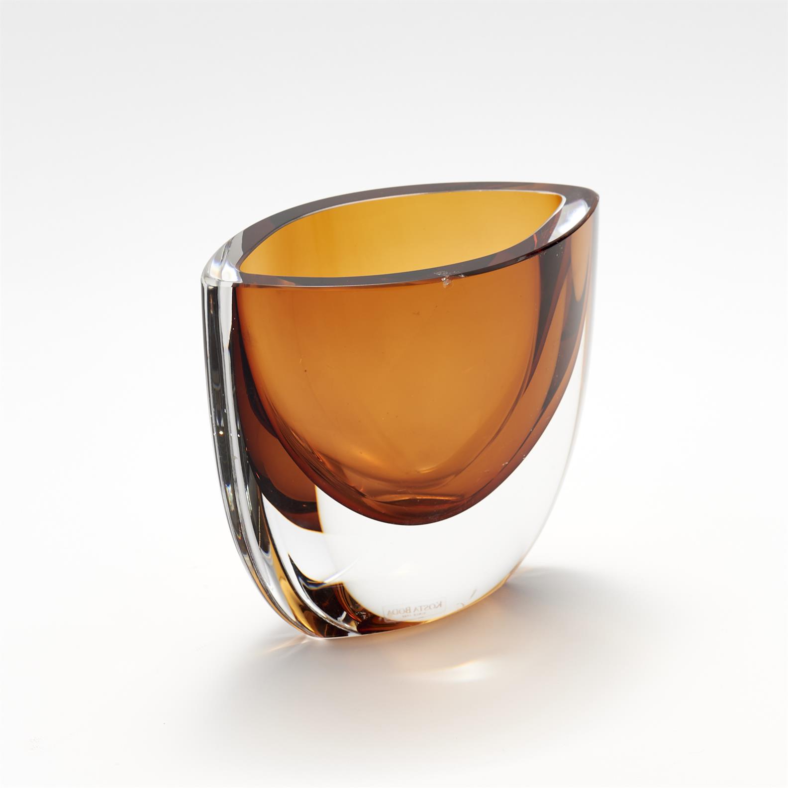 A KOSTA BODA CASED AMBER GLASS VASE H.16CM (A/F, CHIP TO RIM), LEONARD JOEL DELVERY SIZE: MEDIUM
