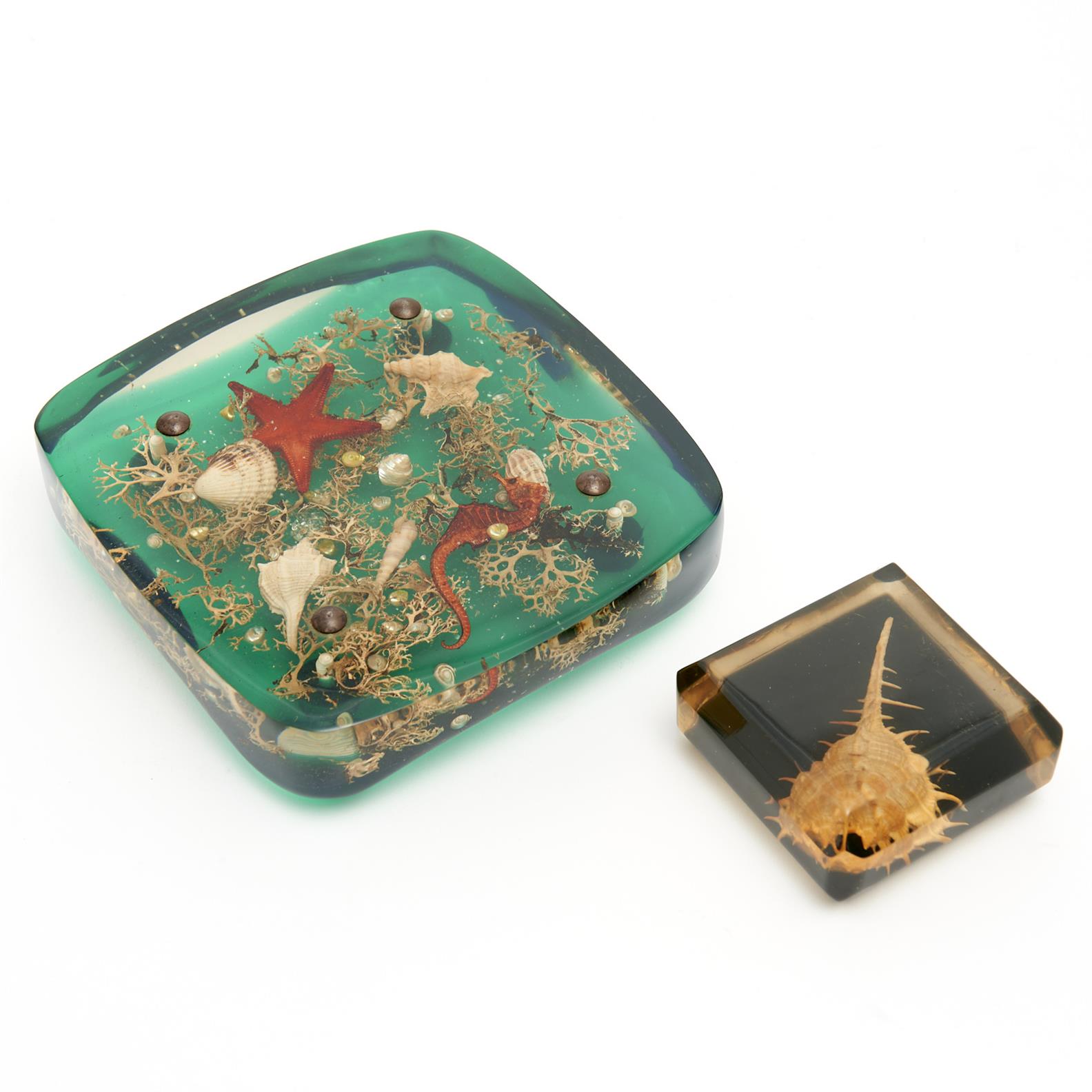 TWO PIECES OF PERSPEX CASED MARINE SPECIMENS W.18CM (LARGEST), LEONARD JOEL DELIVERY SIZE: MEDIUM