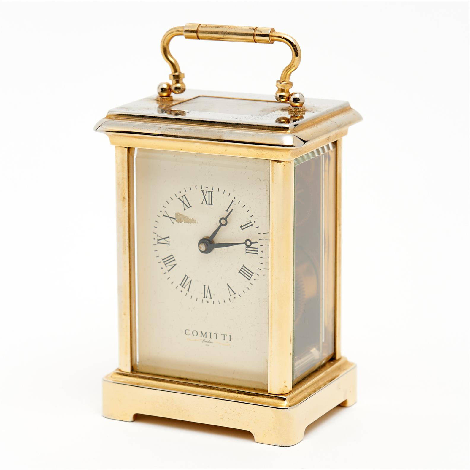 A COMITTI BRASS CARRIAGE CLOCK WITH KEY H.14.5CM, LEONARD JOEL DELIVERY SIZE: SMALL
