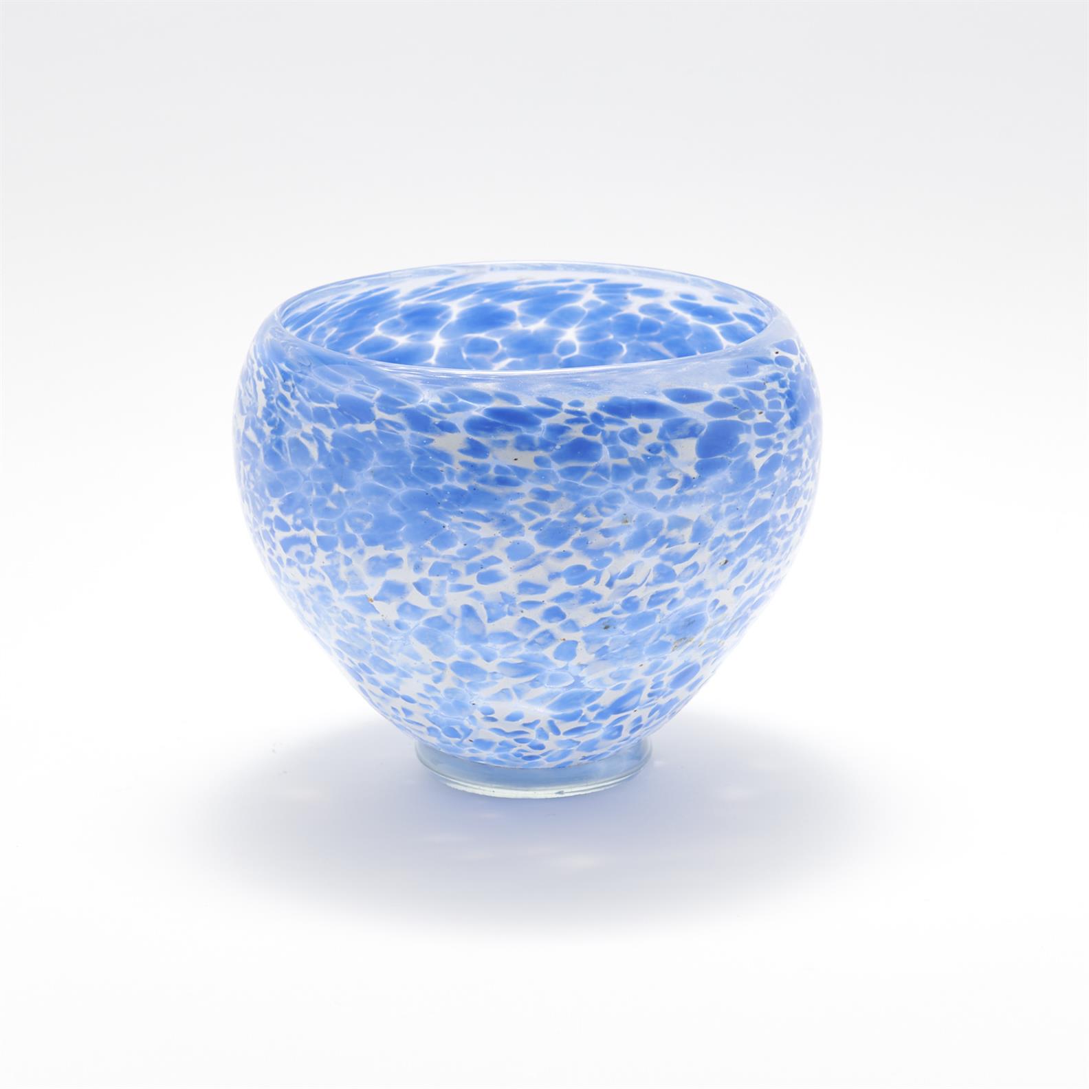 A BLUE AND WHITE AUSTRALIAN STUDIO GLASS BOWL SIGNED 'DON WREFORD 87' DIA.20CM, LEONARD JOEL DELIVERY SIZE: MEDIUM