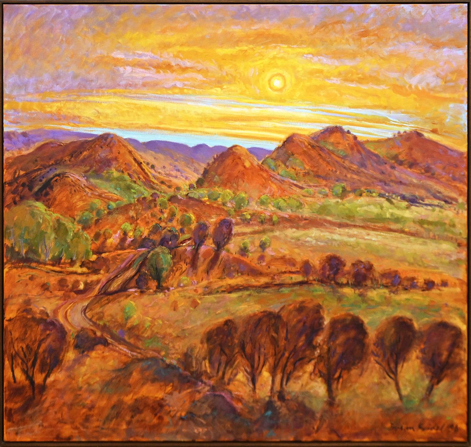 BRIAN SEIDEL, SUNSET AT TEN-MILE CREEK 1998, OIL ON CANVAS, SIGNED AND DATED LOWER RIGHT, 122 X 137CM, FRAME SIZE: 124.5 X 140CM