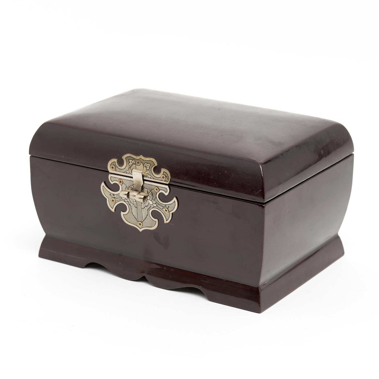 A CHINESE LACQUERED JEWELRY BOX WITH FELT INTERIOR W.21CM, LEONARD JOEL DELIVERY SIZE: MEDIUM