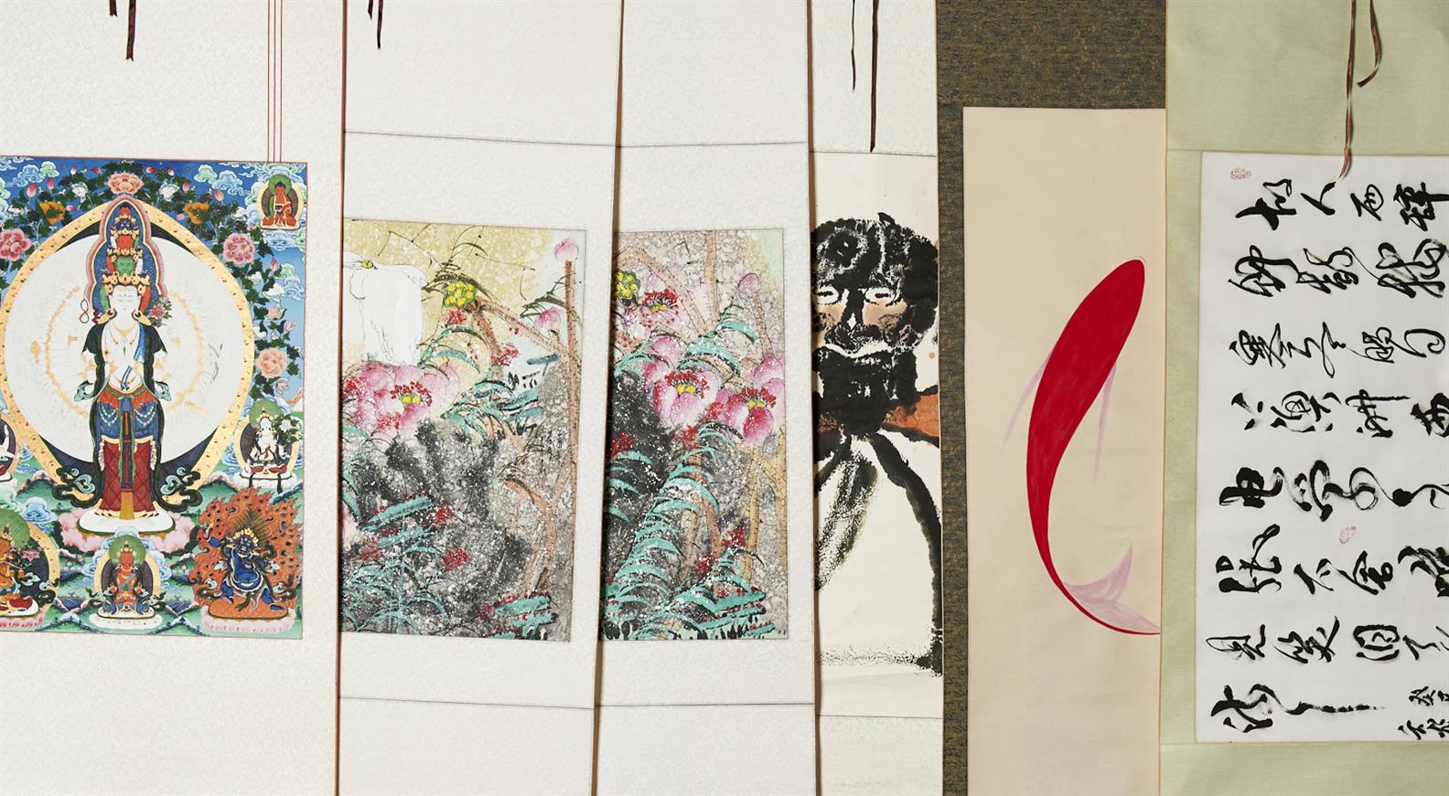 A COLLECTION OF SIX CHINESE SCROLLS INCLUDING A THANKA OF AVALOKITESHVARA, TOGETHER WITH TWO OTHER WORKS ON PAPER L.180CM (LONGEST), LEONARD JOEL DELIVERY SIZE: MEDIUM