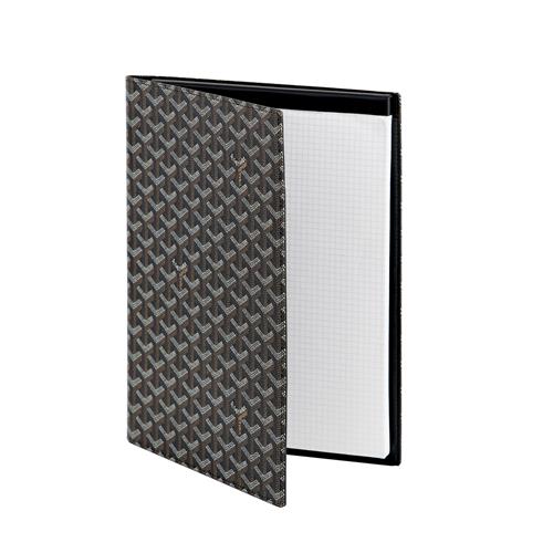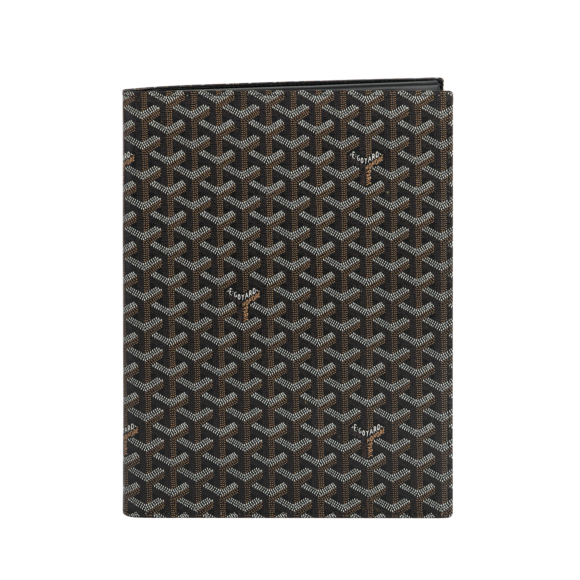 Styled in Goyardine coated canvas with navy leather interior, 24 x 31cm.