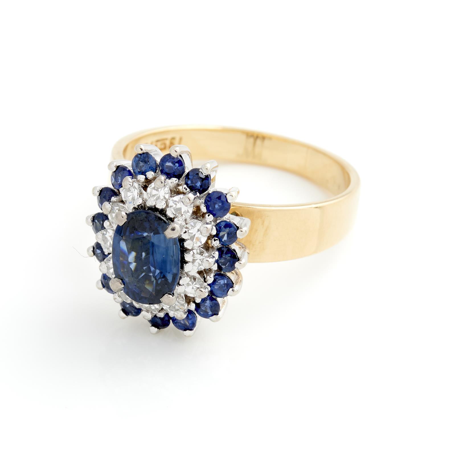 A SAPPHIRE AND DIAMOND RING IN TWO-TONE 18CT GOLD, SIZE M, 5.5GMS