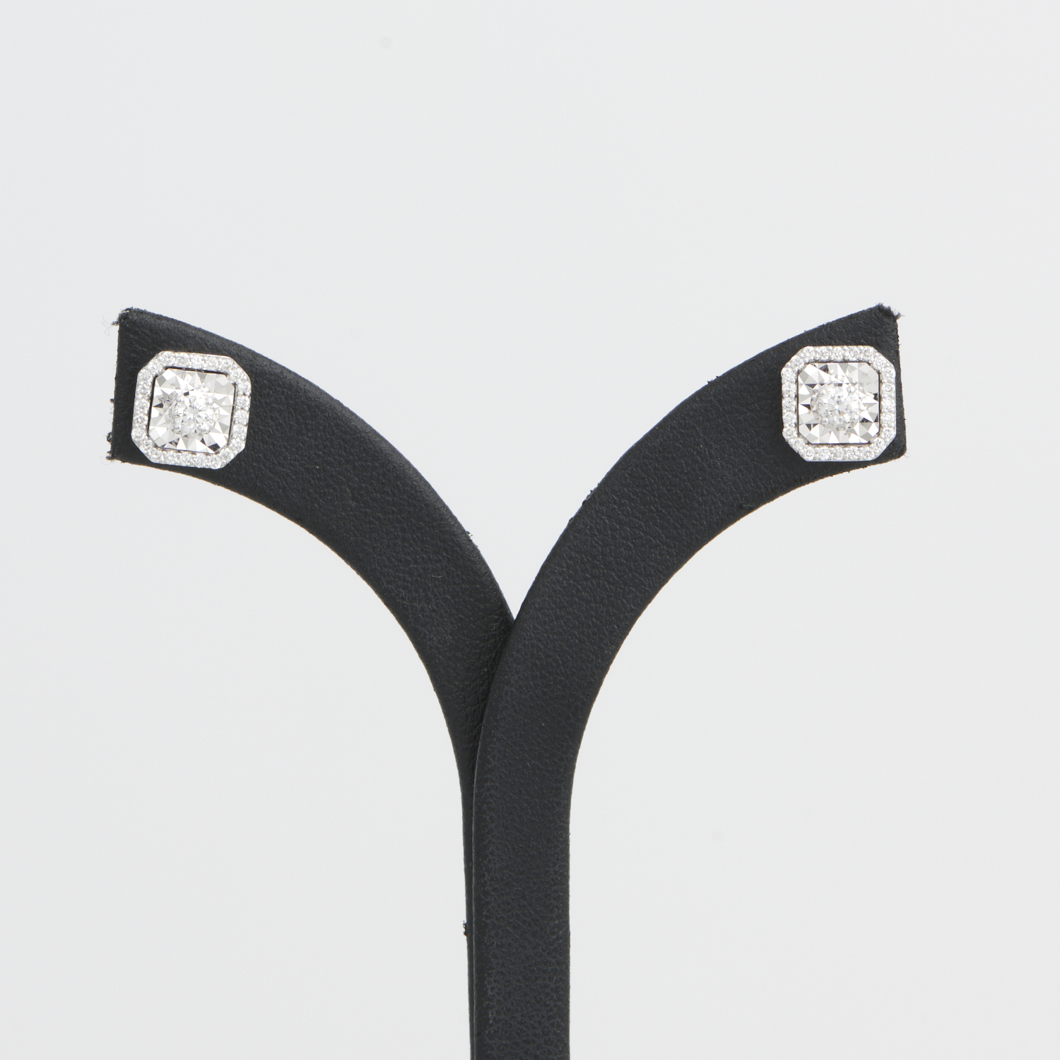 A PAIR OF DIAMOND EARRINGS IN 18CT WHITE GOLD, THE DIAMONDS TOTALLING APPROXIMATELY 0.41CTS, TO POST AND BUTTERFLY FITTINGS