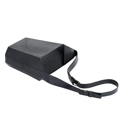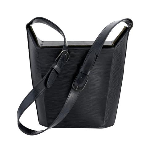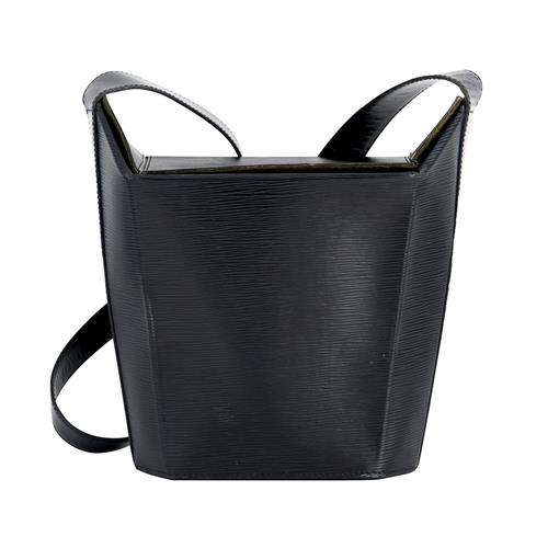 Styled in black Epi leather with black leather trim and gunmetal hardware, of structured design with foldover closure and adjustable shoulder strap, 26 x 28 x 11cm.