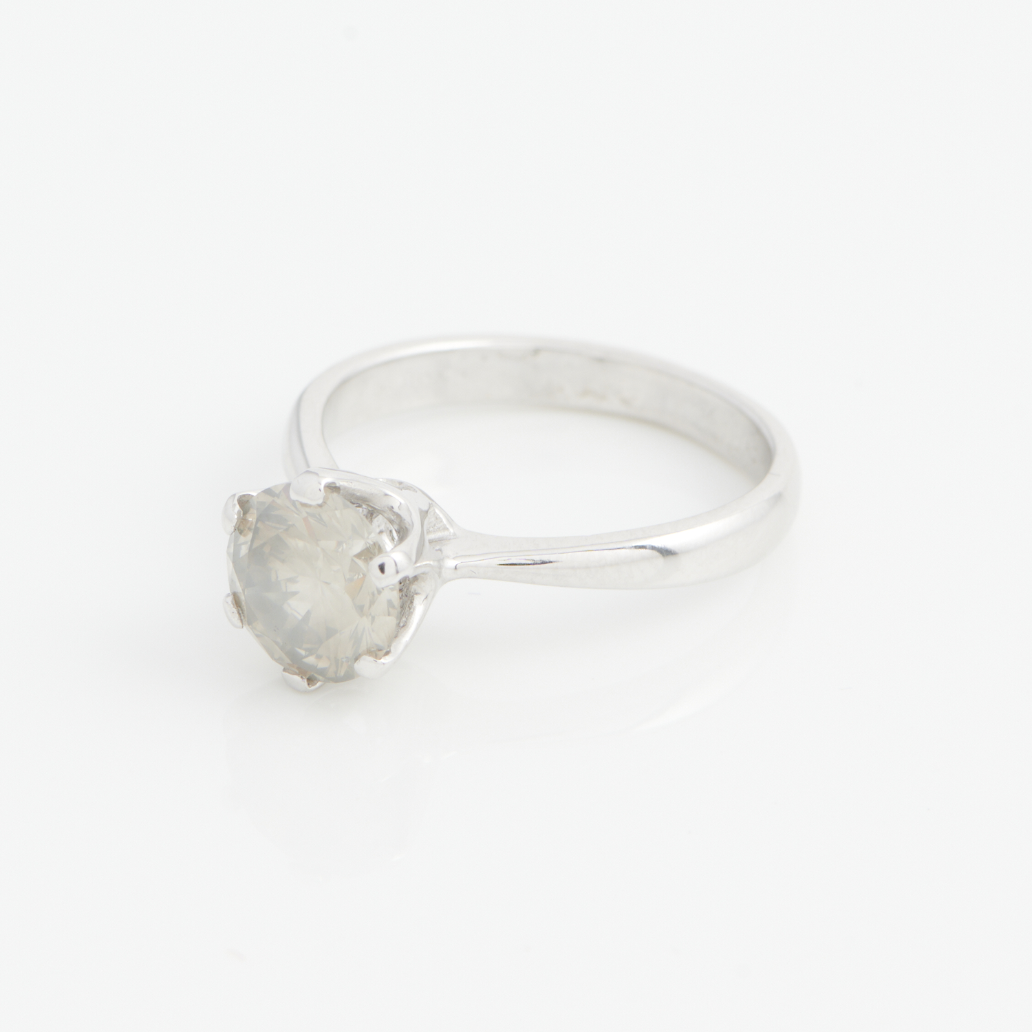 A BROWN DIAMOND RING IN 18CT WHITE GOLD, THE DIAMOND WEIGHING APPROXIMATELY 1.84CTS (SI), SIZE N, 3.8GMS, ACCOMPANIED BY A VALUATION
