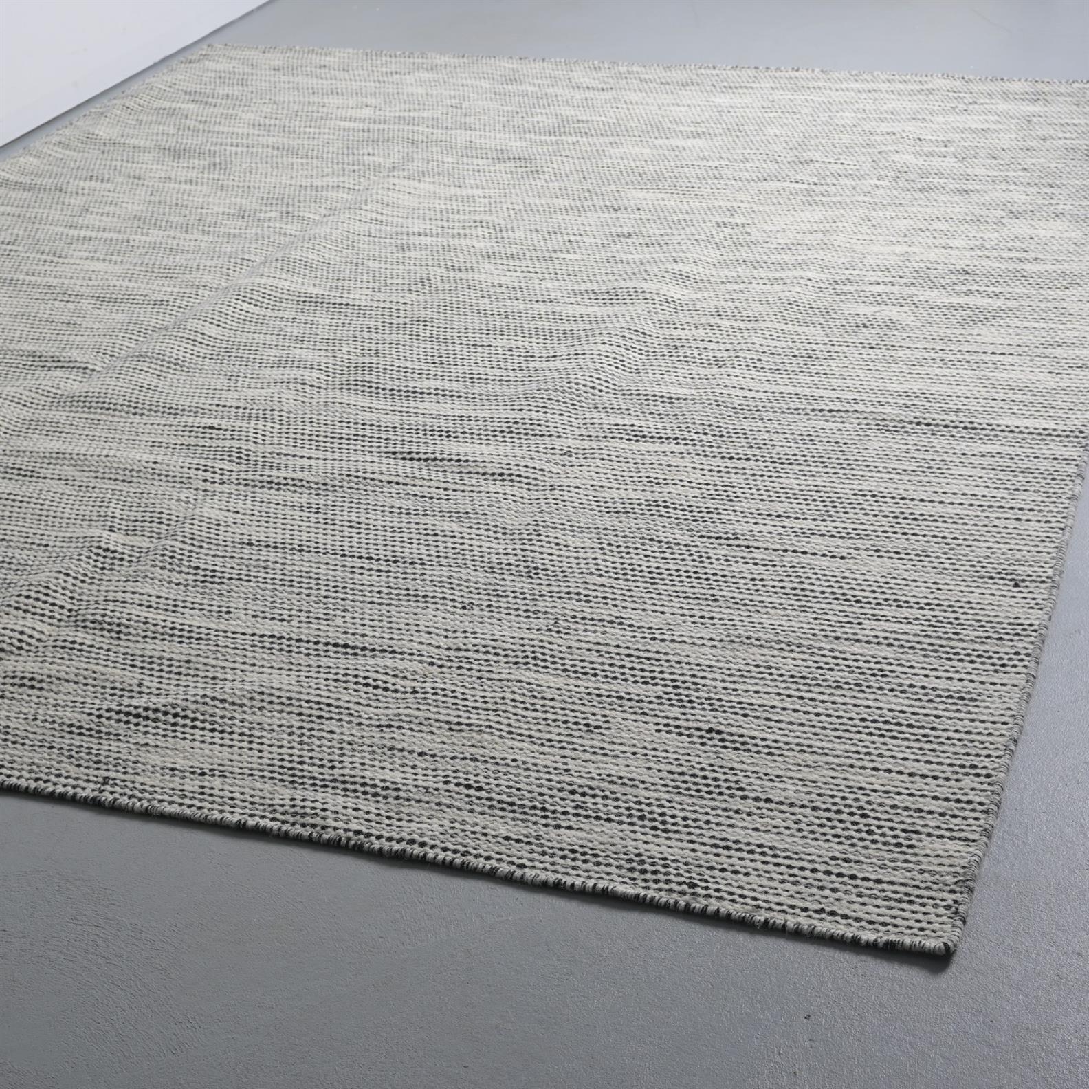 A NEW MODERN FLAT WEAVE SCANDINAVIAN-STYLE WOOLEN RUG. REVERSABLE. HANDMADE LOOM, IN TONES OF IVORY, CHARCOAL AND GREY. ORIGIN: INDIA (244 X 305 CM) (PLEASE NOTE THERE MAY BE SOME COLOUR VARIATION FROM PHOTOGRAPH)