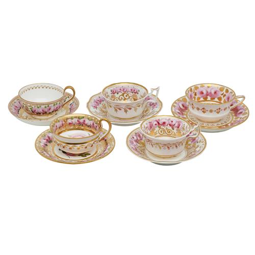All painted with pink roses by various makers including Newhall, Coalport, Nantgarw & Hilditch