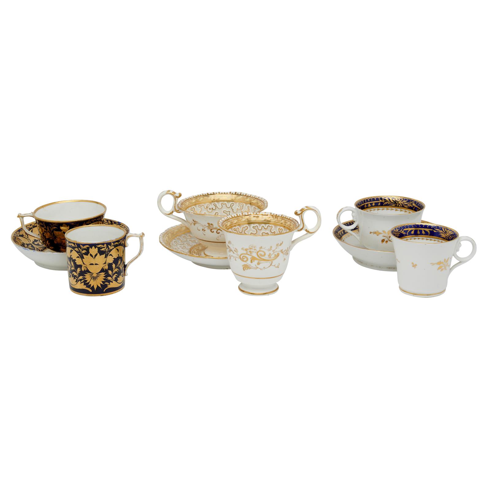 Together with a Ridgway trio, decorated with bands of yellow and beige ground bands beneath heavy gold patterning, pattern "8515", circa 1845.