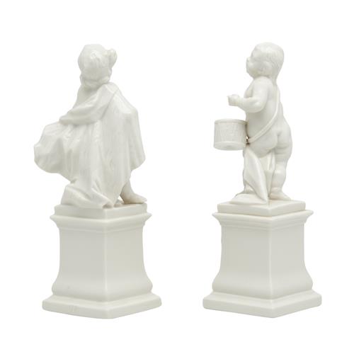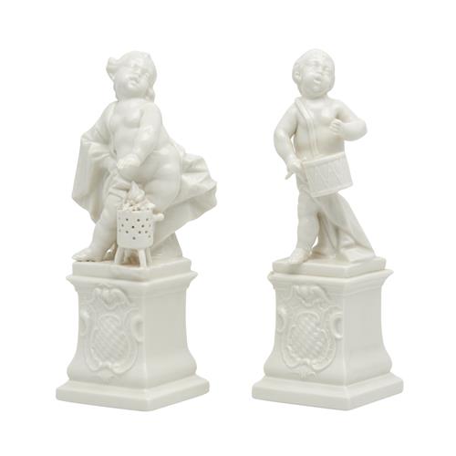 the other as a drummer, each standing on a square pedestal, each moulded with the factory emblem. Impressed factory shield on both, ‘699' on winter and ‘'303' on drummer