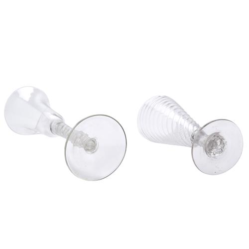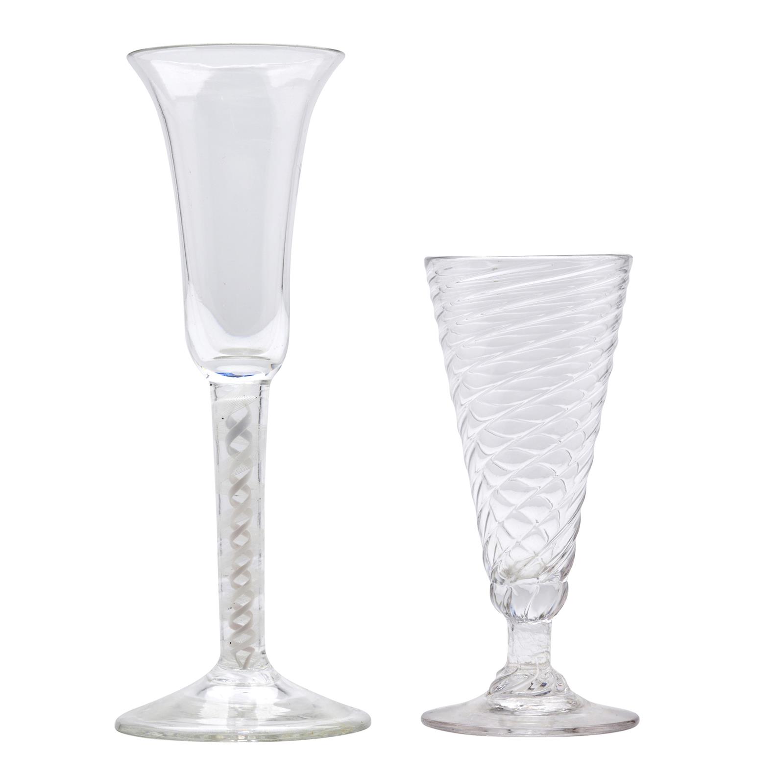 The first with a bell shaped bowl, on a double spiral twist stem, the second a wythern form ale glass