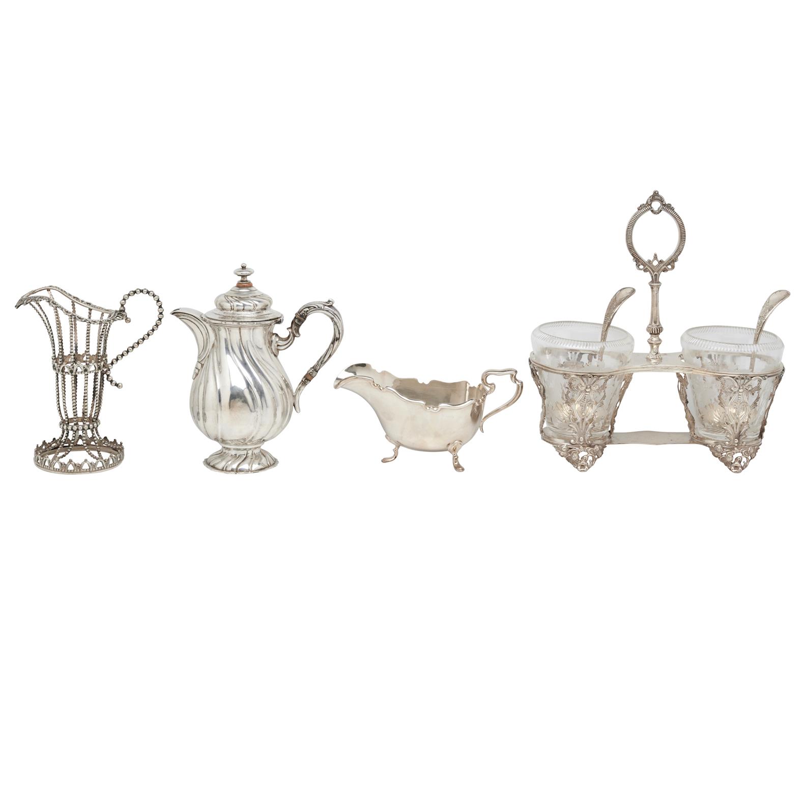 Comprising a condiment, continental coffee pot, beaded creamer (no liner) and EPNS sauce boat
