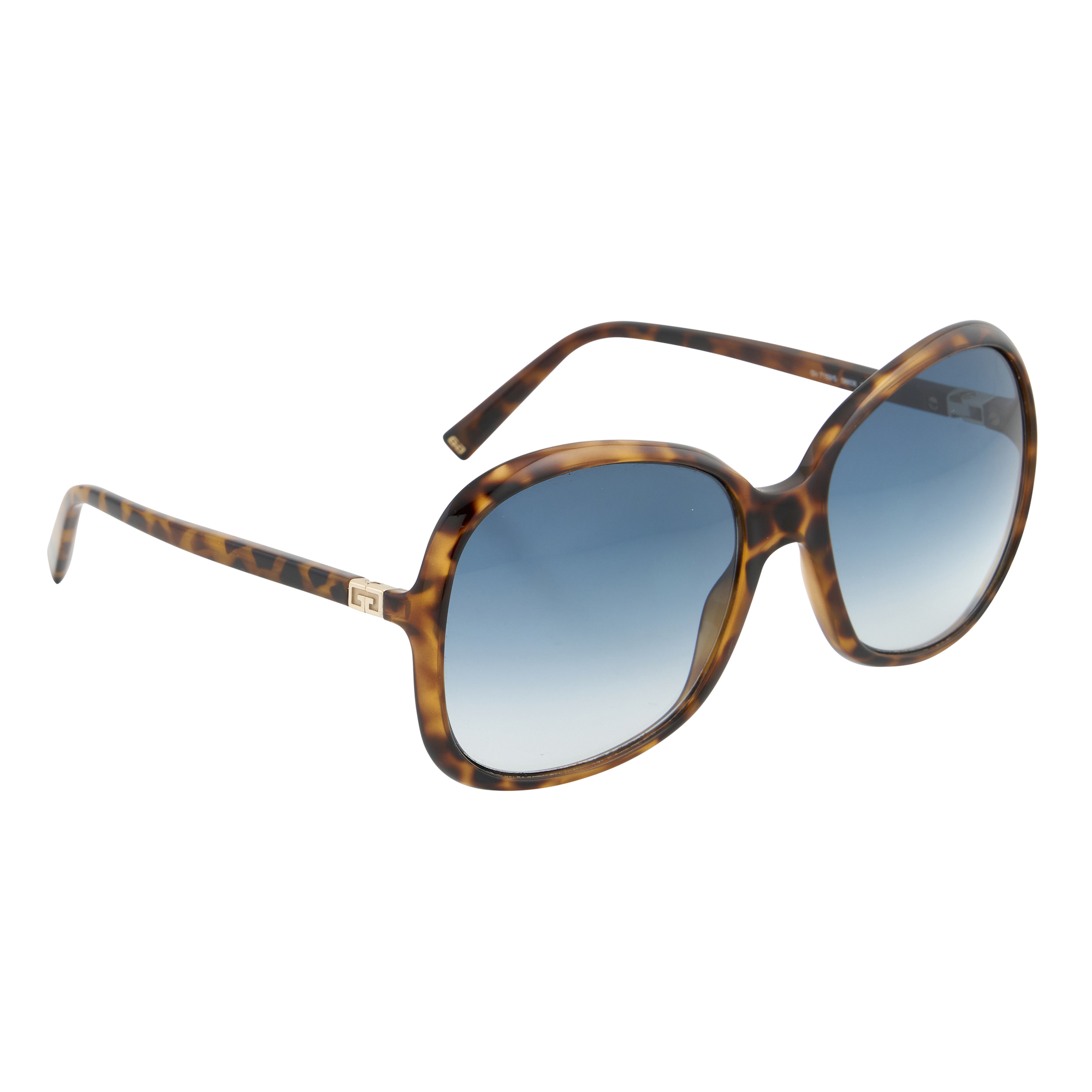 The oversized frames styled in tortoise composite with gradient lenses, featuring logo detail to temples in gold tone metal.