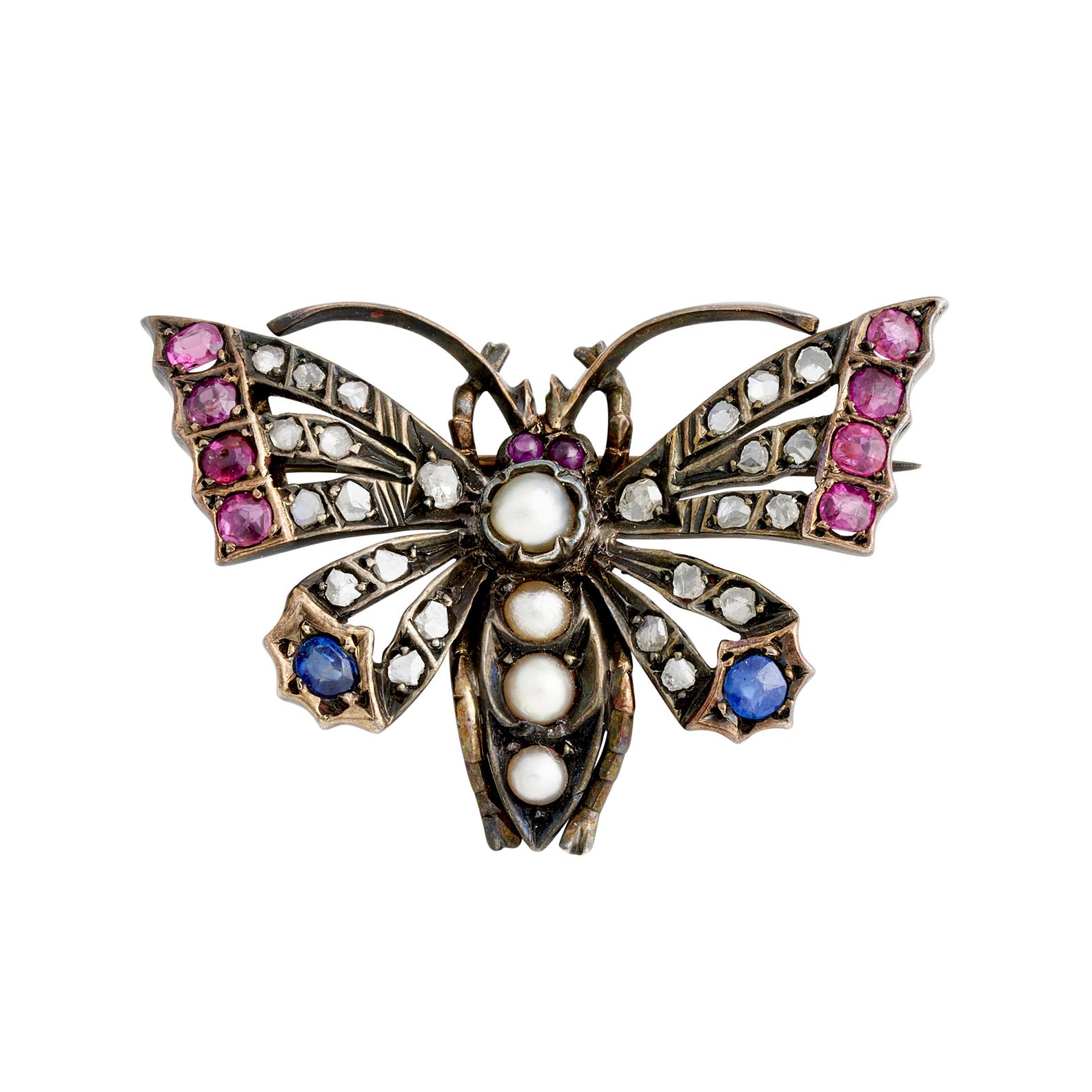 In our opinion, the mounting displays some scratches, scuffs, and tarnish commensurate with age and wear. Sapphires, spinels, diamonds and seed pearls are of good commercial and decorative quality. Some claws may require attention.