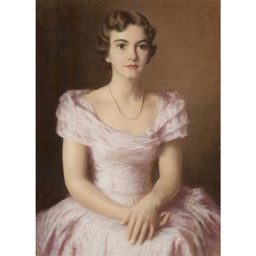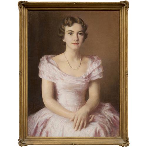 inscribed on unknown label verso: Joan Wright/ Living at/ 9 Berkeley St/ Hawthorn -/ Sitting for this portrait/ by Cumbrae Stewart in/ 1949 prior to PARIS STUDY