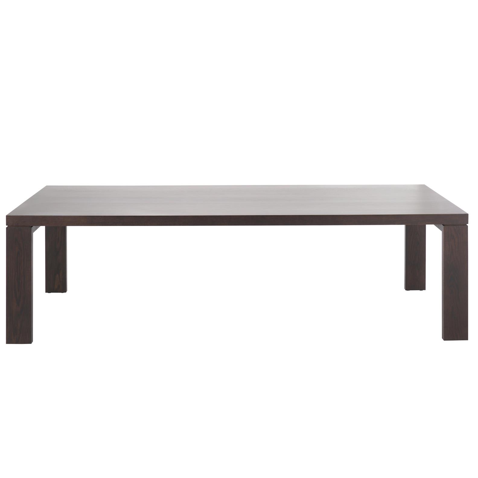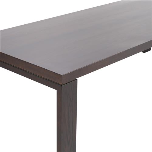 Floating rectangular tabletop on mitred legs in solid dark-stained American Oak.