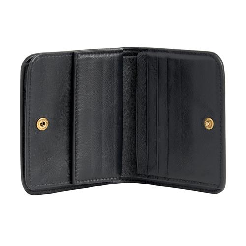 Styled in black grained leather with logo print detail, 10.5 x 9cm