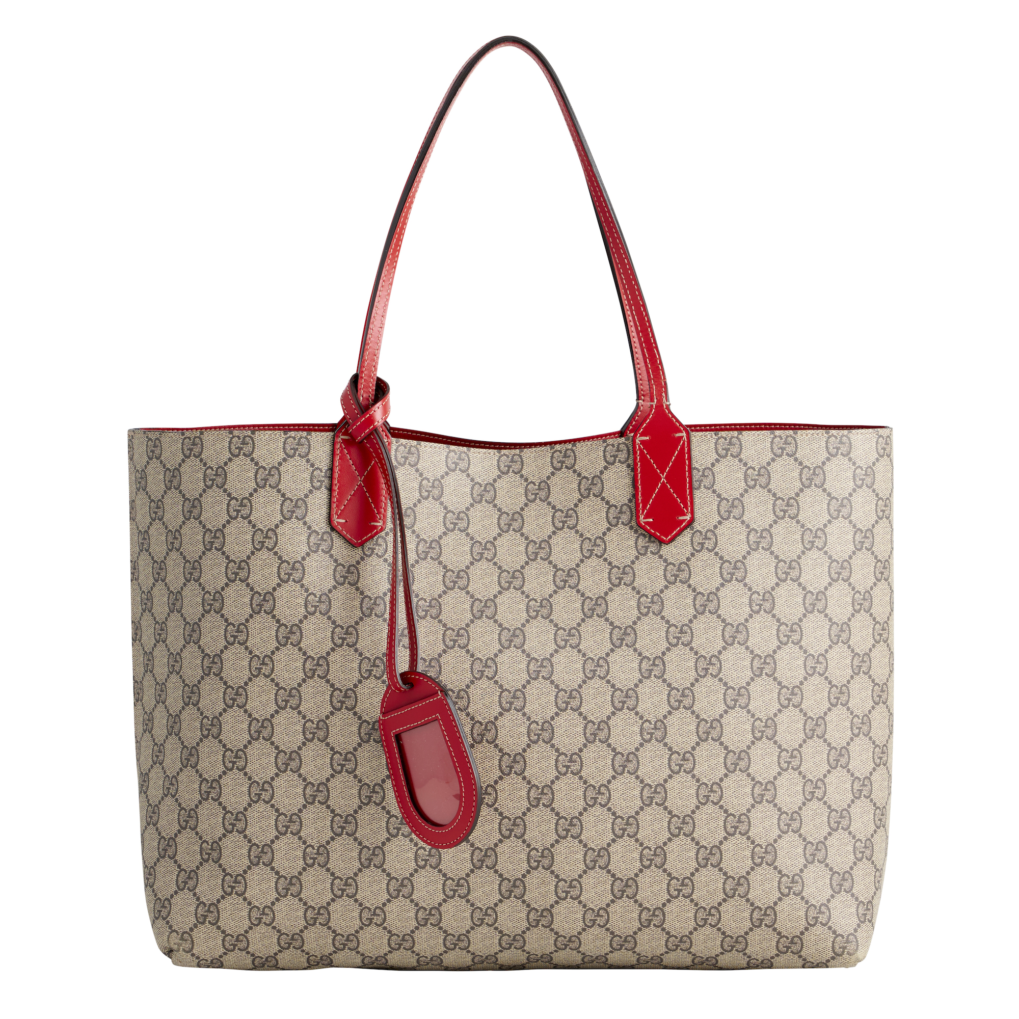 Styled in Supreme coated canvas with red leather trim and conforming interior, featuring white contrast top stitching, 28 x 27 x 11cm.