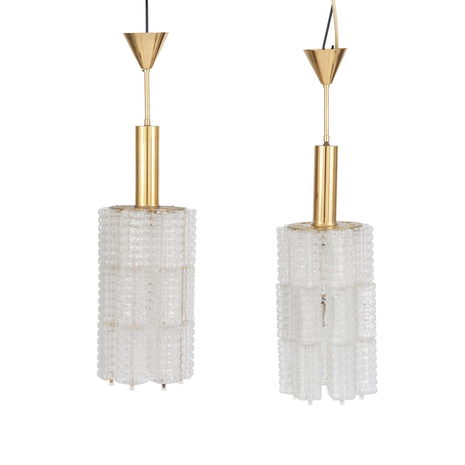 Textured square clear glass tubes fixed to brass tone frame and stem.