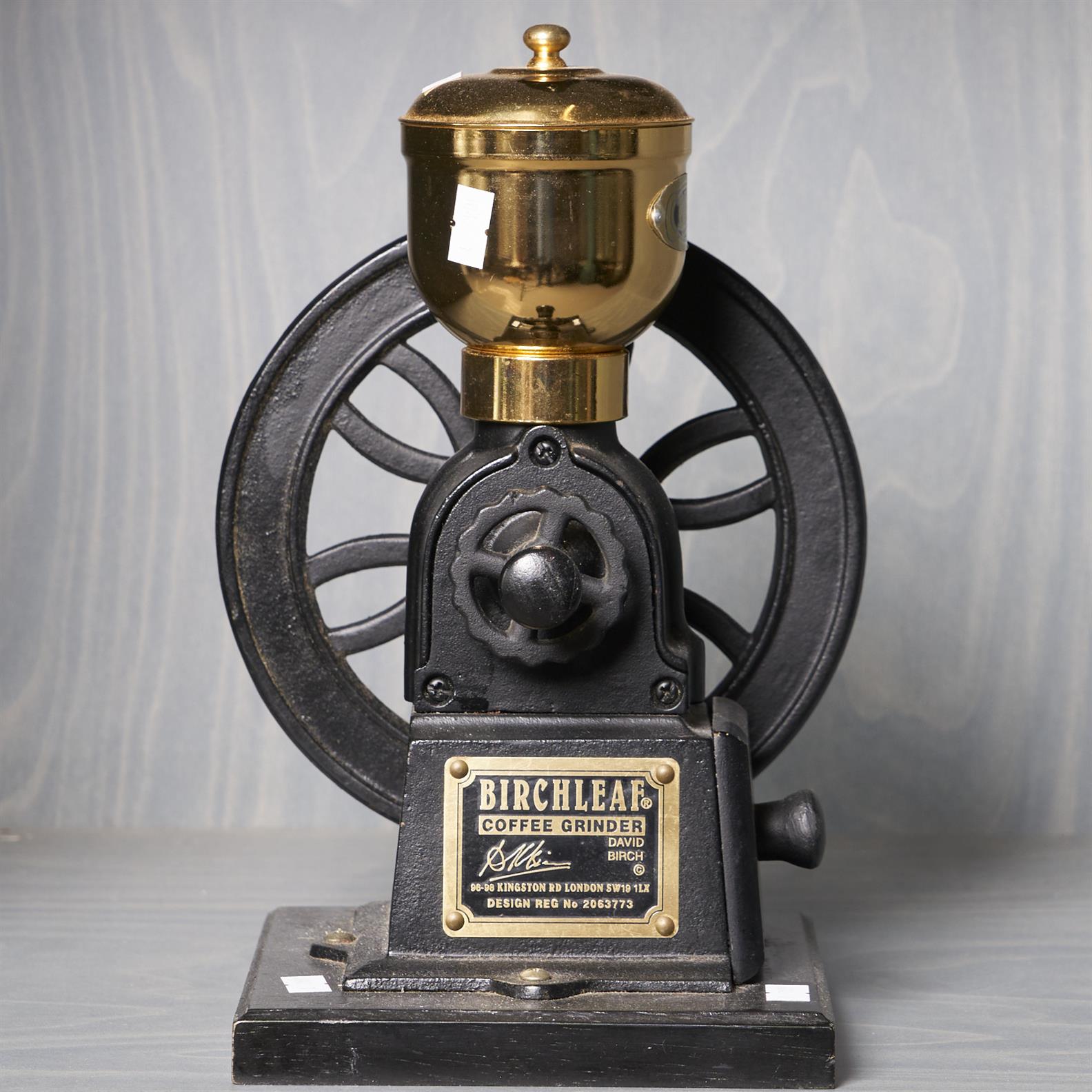 A CAST IRON AND BRASS BIRCHLEAF COFFEE GRINDER BY DAVID BIRCH H.30CM, LEONARD JOEL DELIVERY SIZE: LARGE