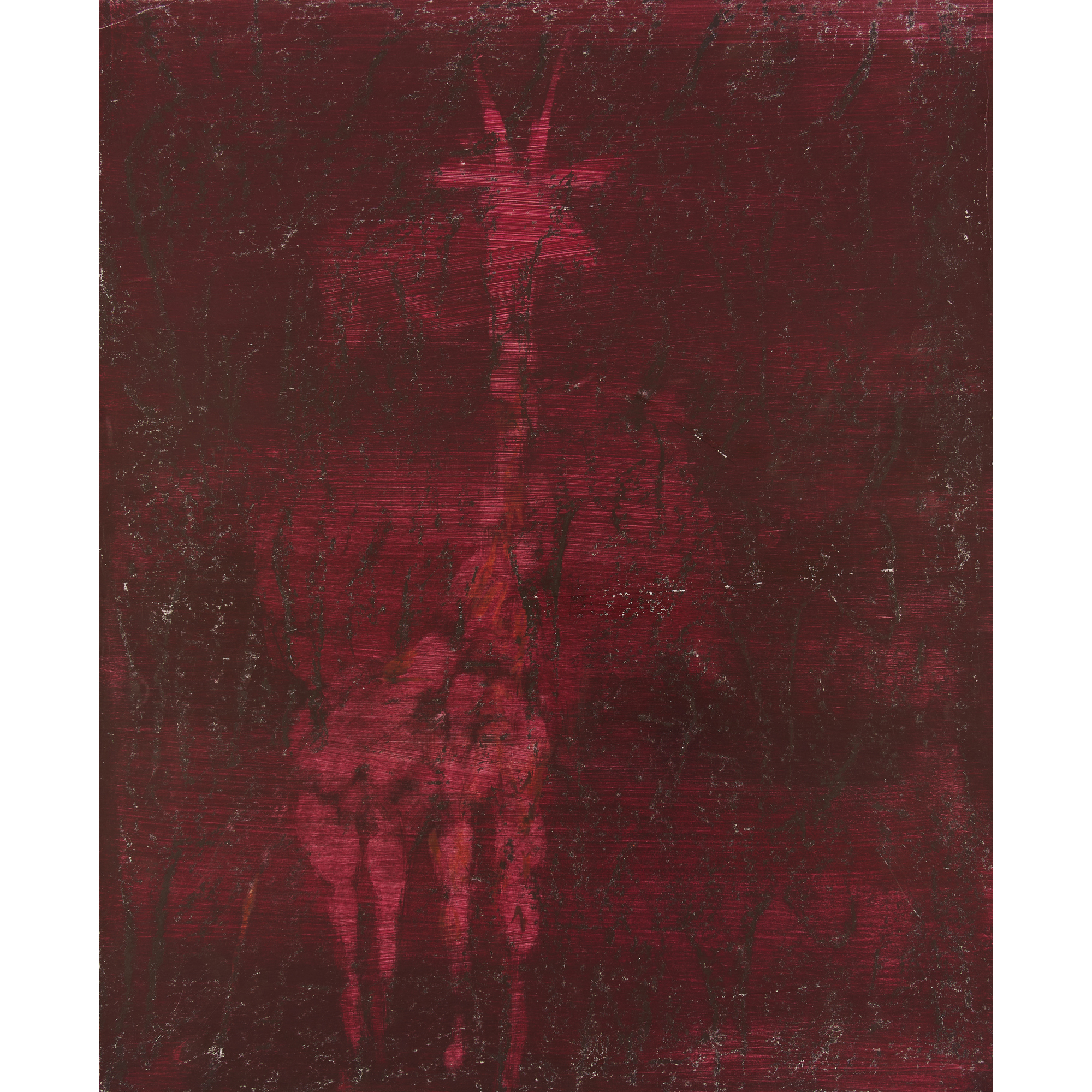 The image is in fair condition. There are surface marks and scratches across the artwork all likely from the artist and their studio. There is a crease seen to the upper right edge approximately 18cm in length and a crease to the upper left corner. This work is currently unframed.
