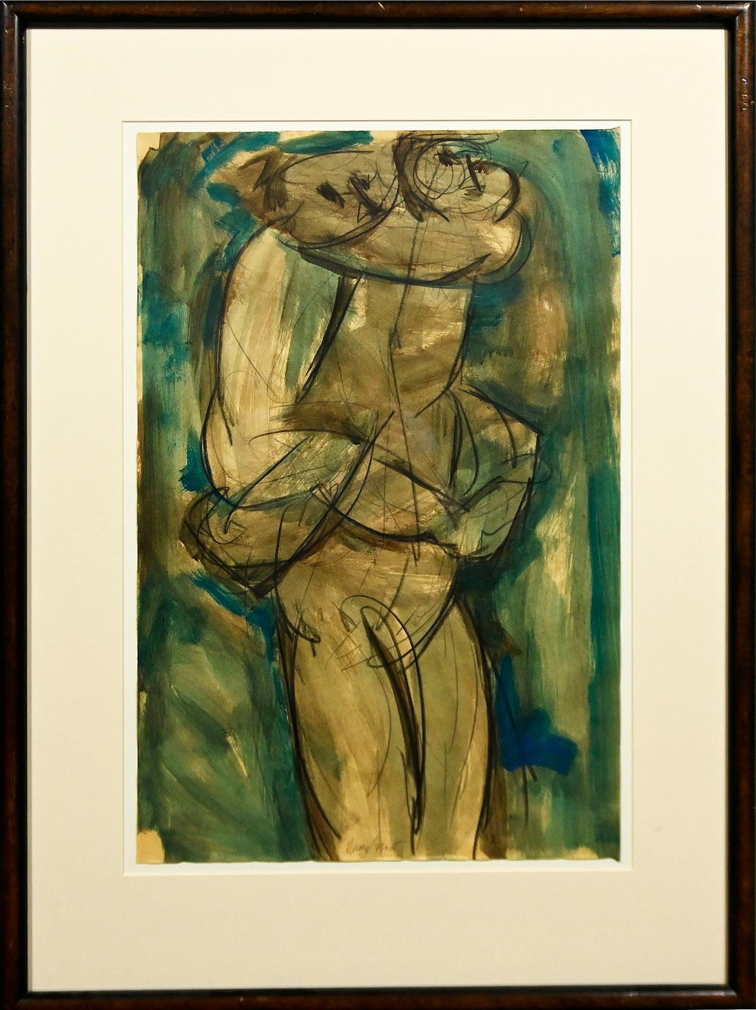 crayon, ink and wash on paper