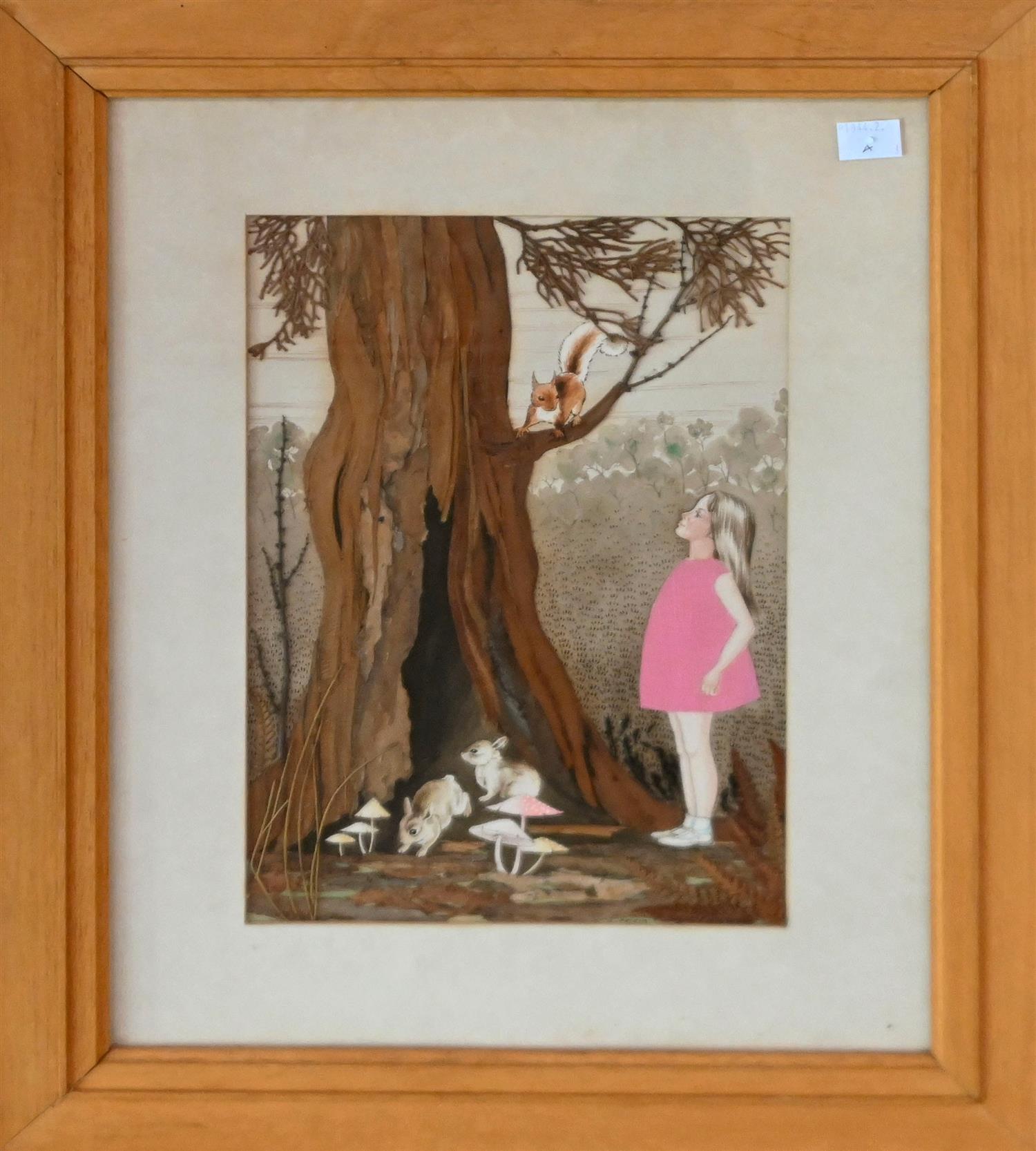 ARTIST UNKNOWN (SIGNED E. CRAIG), GIRL FOREST ANIMALS,