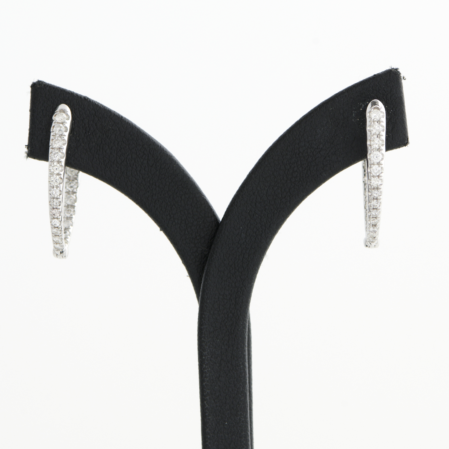 A PAIR OF DIAMOND EARRINGS IN 18CT WHITE GOLD, THE DIAMONDS TOTALLING 0.70CTS (G/SI), TO POST FITTINGS, 24MM, 4.4GMS