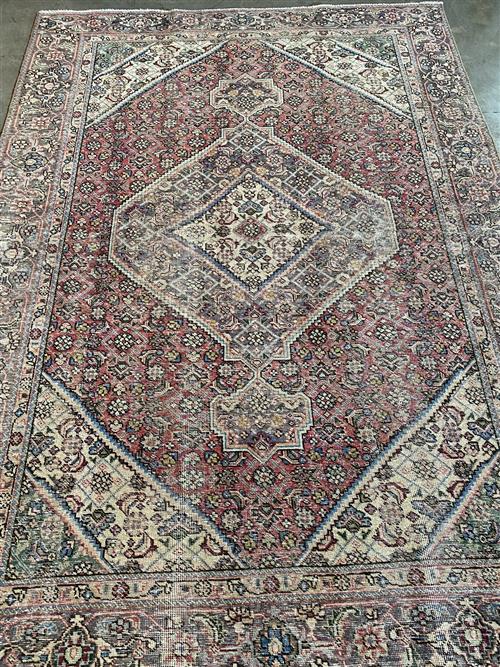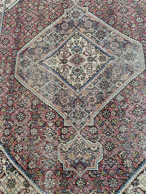 A HAND-KNOTTED JOSHAGAN 100% WOOLEN RUG, GALLERY COLLECTION. DISTINCT DESIGN OF DIAMOND-SHAPED MEDALLION SET AGAINST DIAGONAL ROWS O...