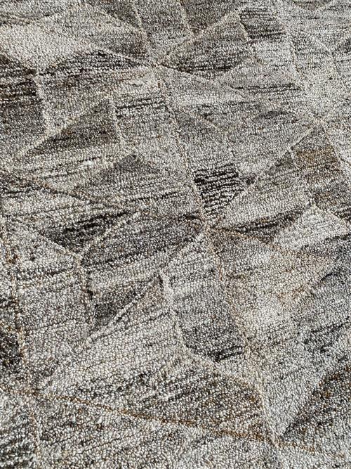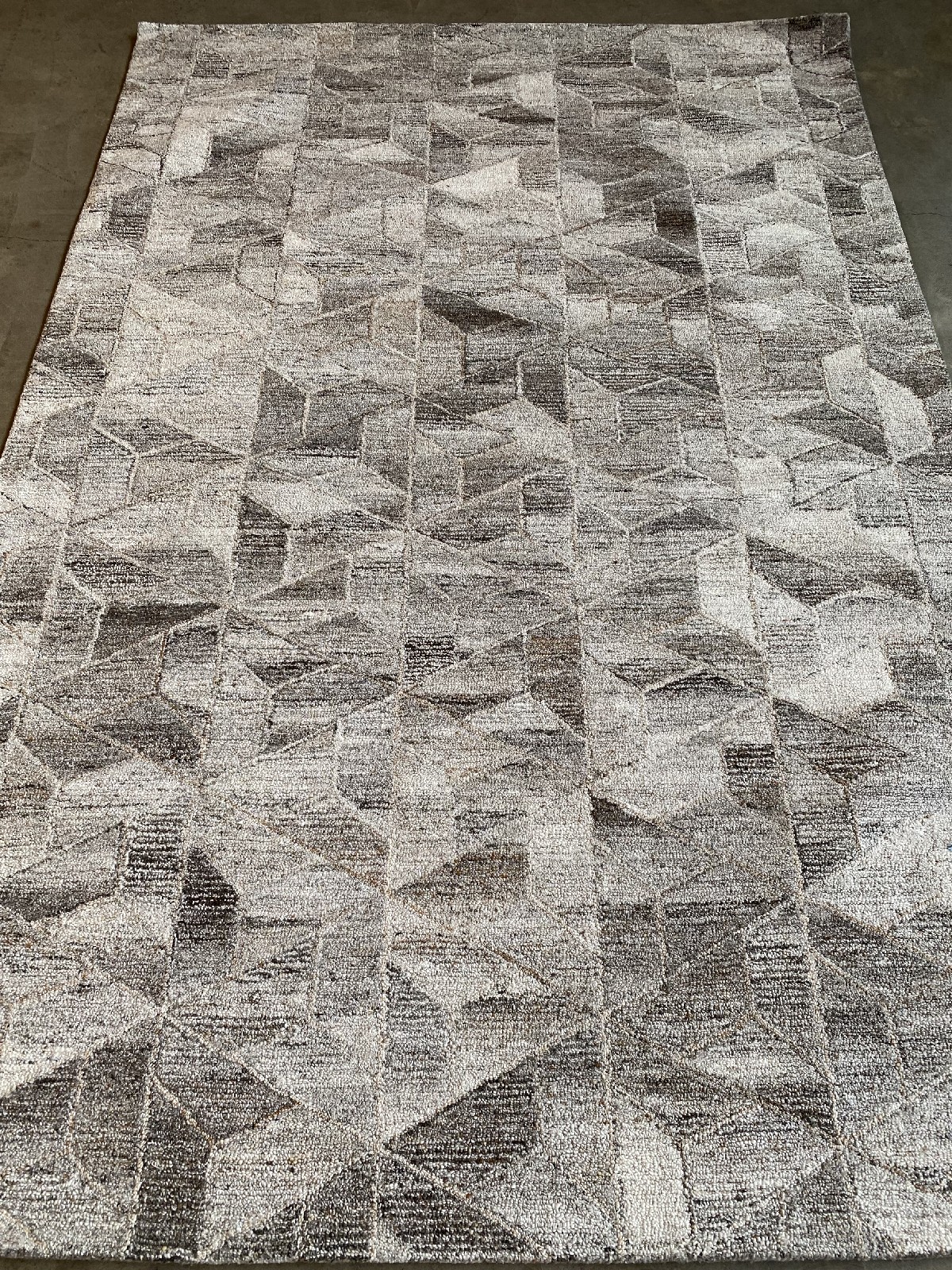 A NEW MODERN MOSAIC HERITAGE COLLECTION WOOL AND VISCOSE RUG. HAND TUFTED IN ALL OVER GREY TONES. ORIGIN: INDIA (247 X 184 CM) (PLEASE NOTE THERE MAY BE SOME COLOUR VARIATION FROM PHOTOGRAPH)