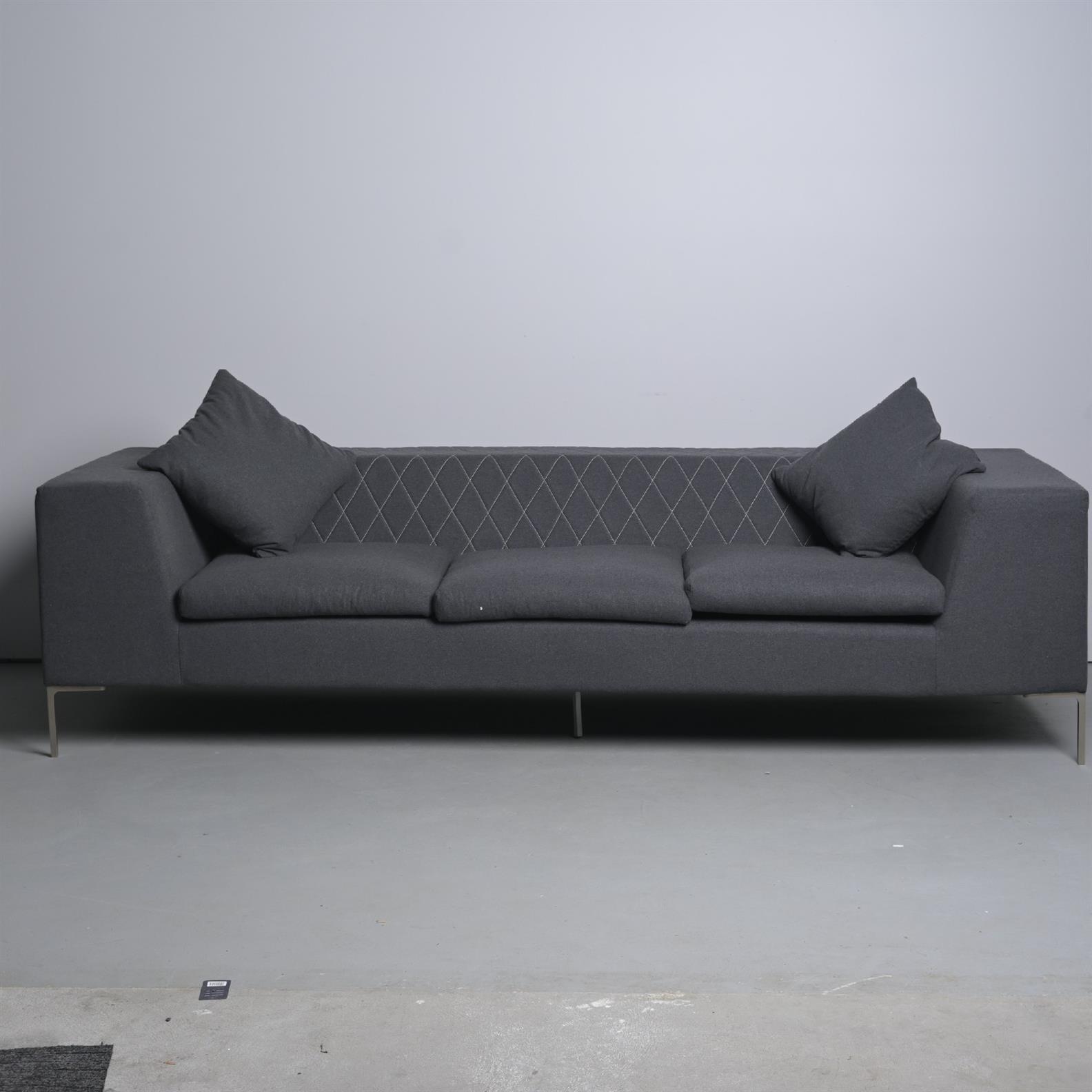 A CONTEMPORARY THREE-SEAT SOFA, UPHOLSTERED IN WOOLEN FABRIC (71H X 264W X 90D CM) (THIS ITEM MUST BE REMOVED BY CARRIERS AT THE CUSTOMER'S EXPENSE. LEONARD JOEL STAFF CANNOT ASSIST CARRYING THIS ITEM)