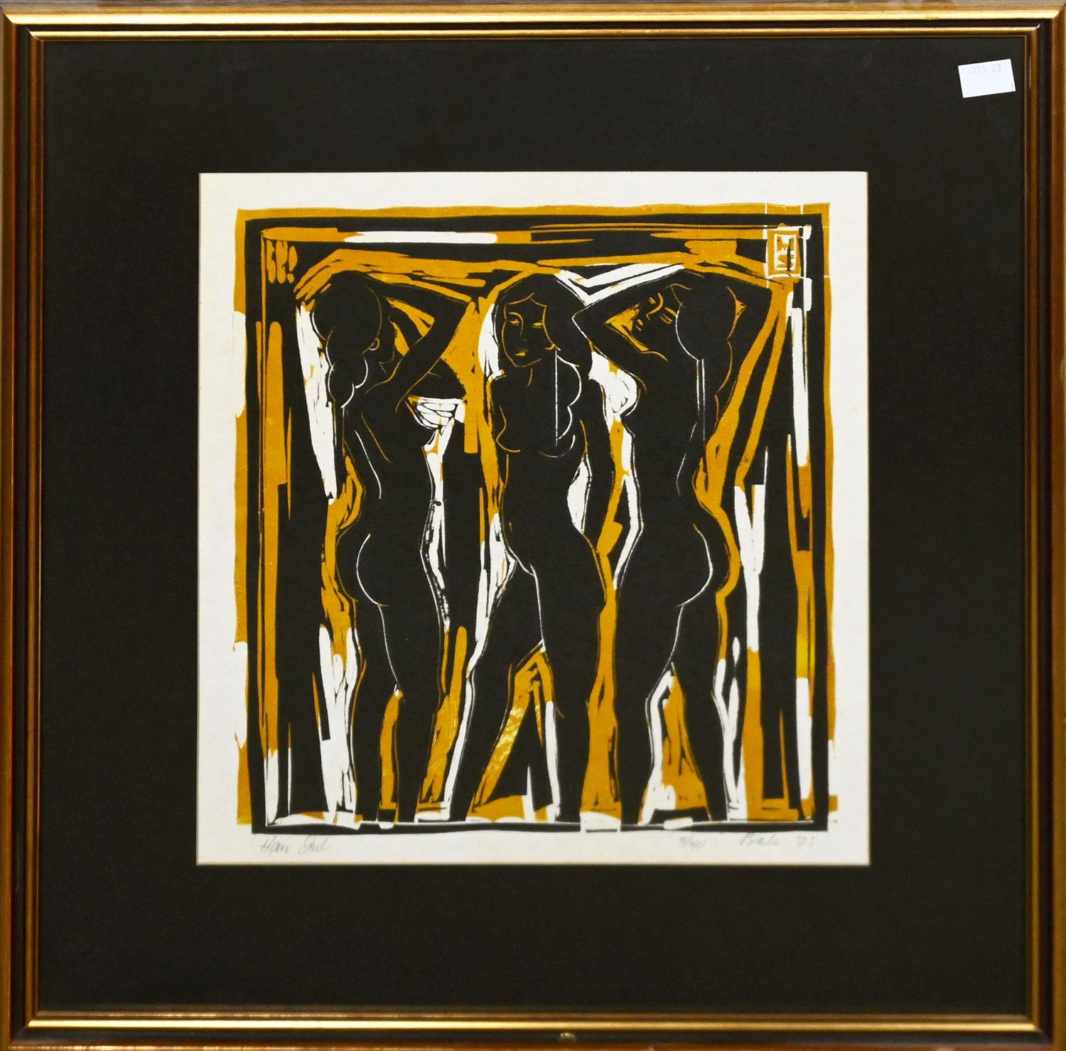 WOODBLOCK PRINT IN TWO COLOURS ED.5/40, SIGNED WITH MONOGRAM IN BLOCK UPPER RIGHT, TITLED, DATED AND EDITIONED BELOW IMAGE, 31 X 26.5CM, FRAME SIZE: 52 X 47.5CM