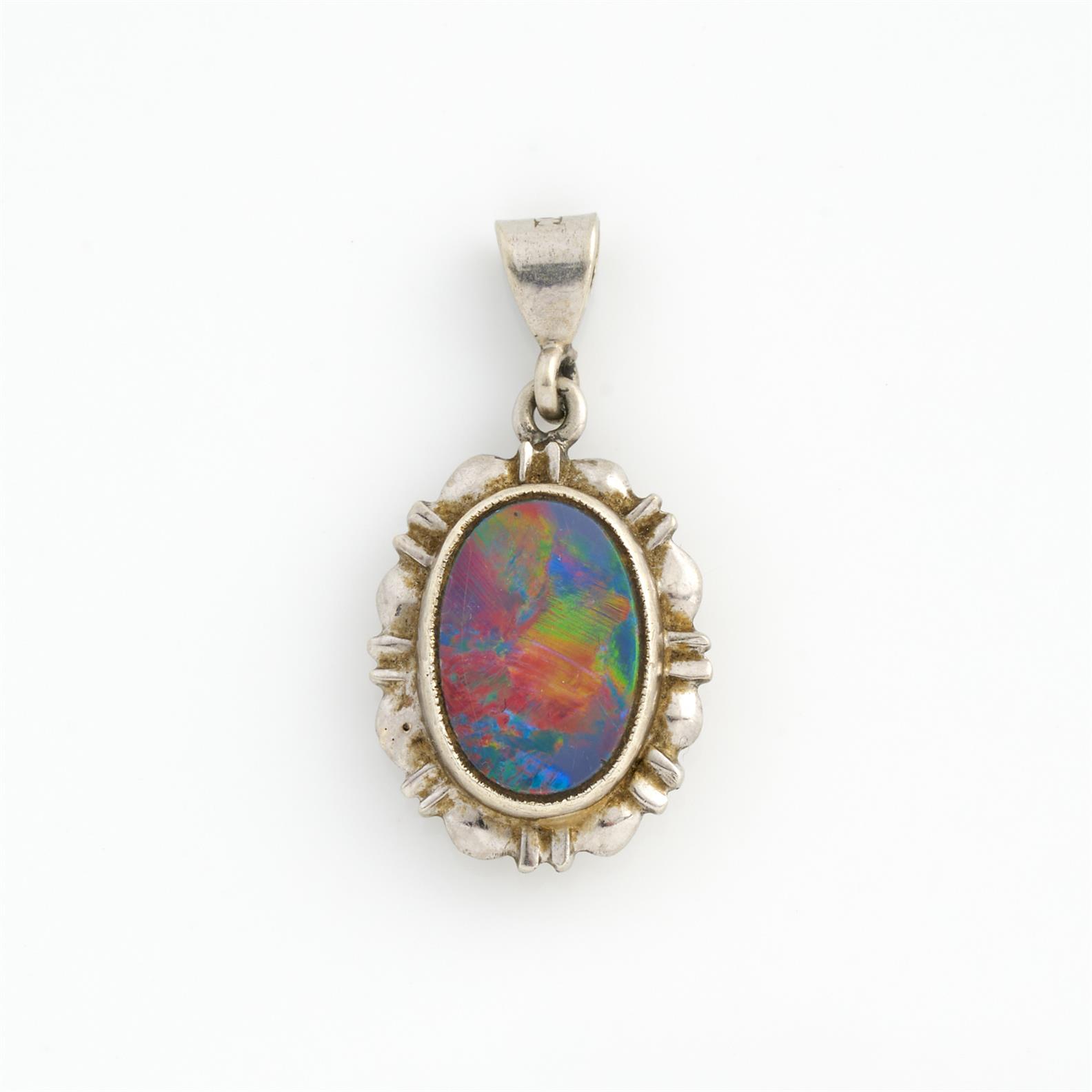 DUNKLINGS, A VINTAGE OPAL DOUBLET PENDANT IN 9CT WHITE GOLD, 18 X 11MM, 2.3GMS