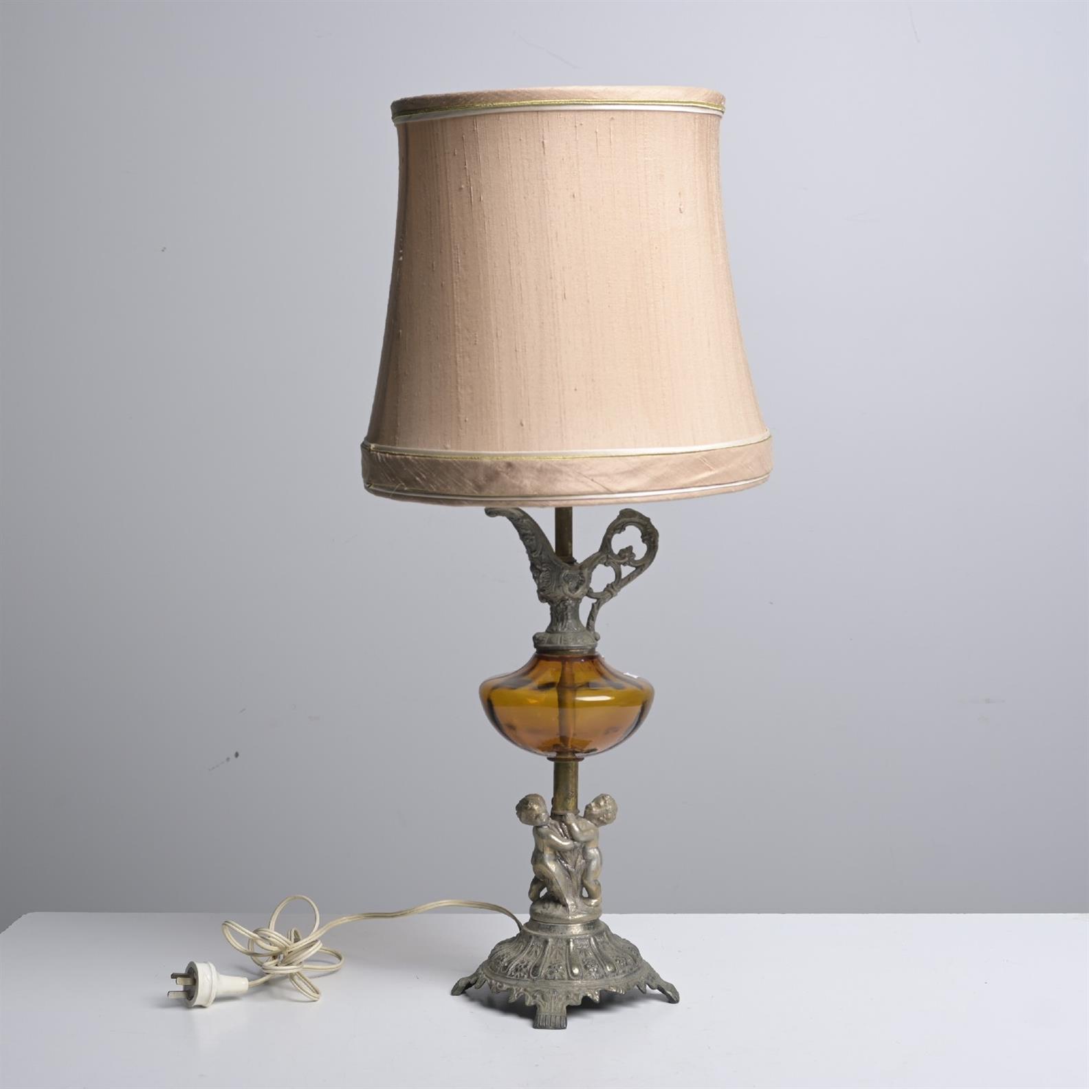 A PEWTER AND GLASS TABLE LAMP (80H X 36DIA CM) (LEONARD JOEL DELIVERY SIZE: MEDIUM)