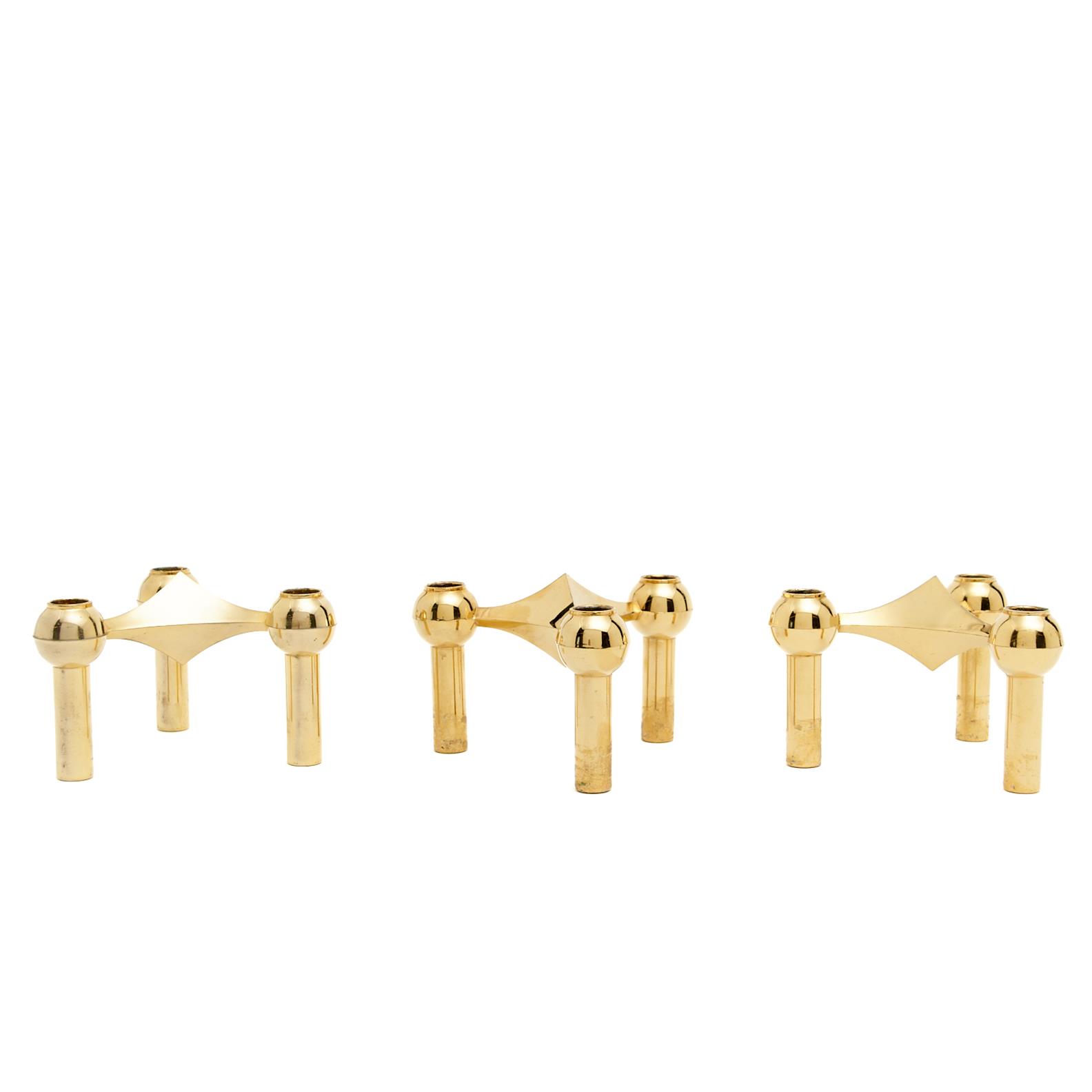 A TRIO OF GILDED METAL STOFF NAGEL STYLE CANDLE HOLDERS H.6.5CM, LEONARD JOEL DELIVERY SIZE: SMALL