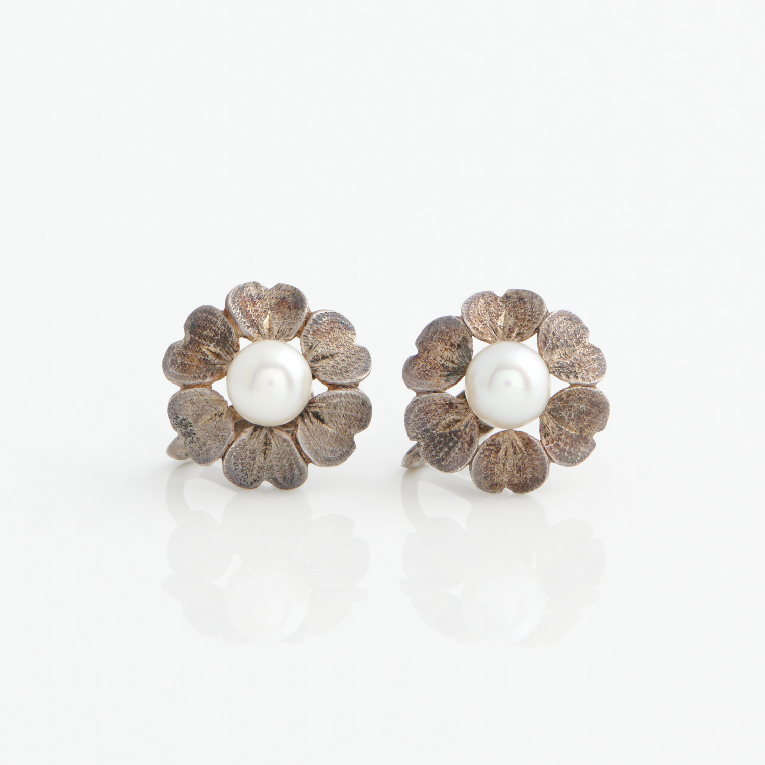 A PAIR OF PEARL EARRINGS IN SILVER, TO SCREW BACK FITTINGS, DIAMETER 15MM