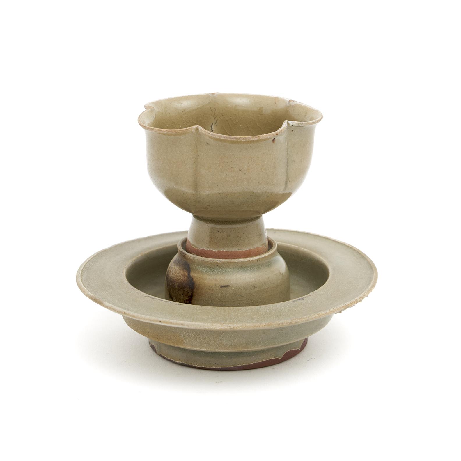 A CELADON CUP ON STAND H.9.5CM, LEONARD JOEL DELIVERY SIZE: SMALL