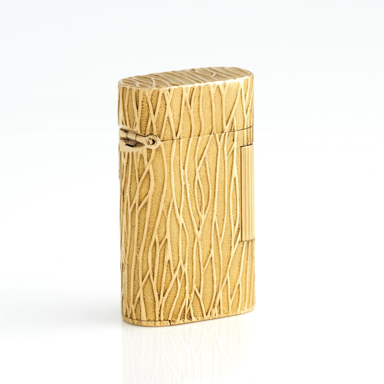DUNHILL, A VINTAGE LIGHTER TO AN OUTER JACKET IN 18CT GOLD, FEATURING A TEXTURED WAVE PATTERN