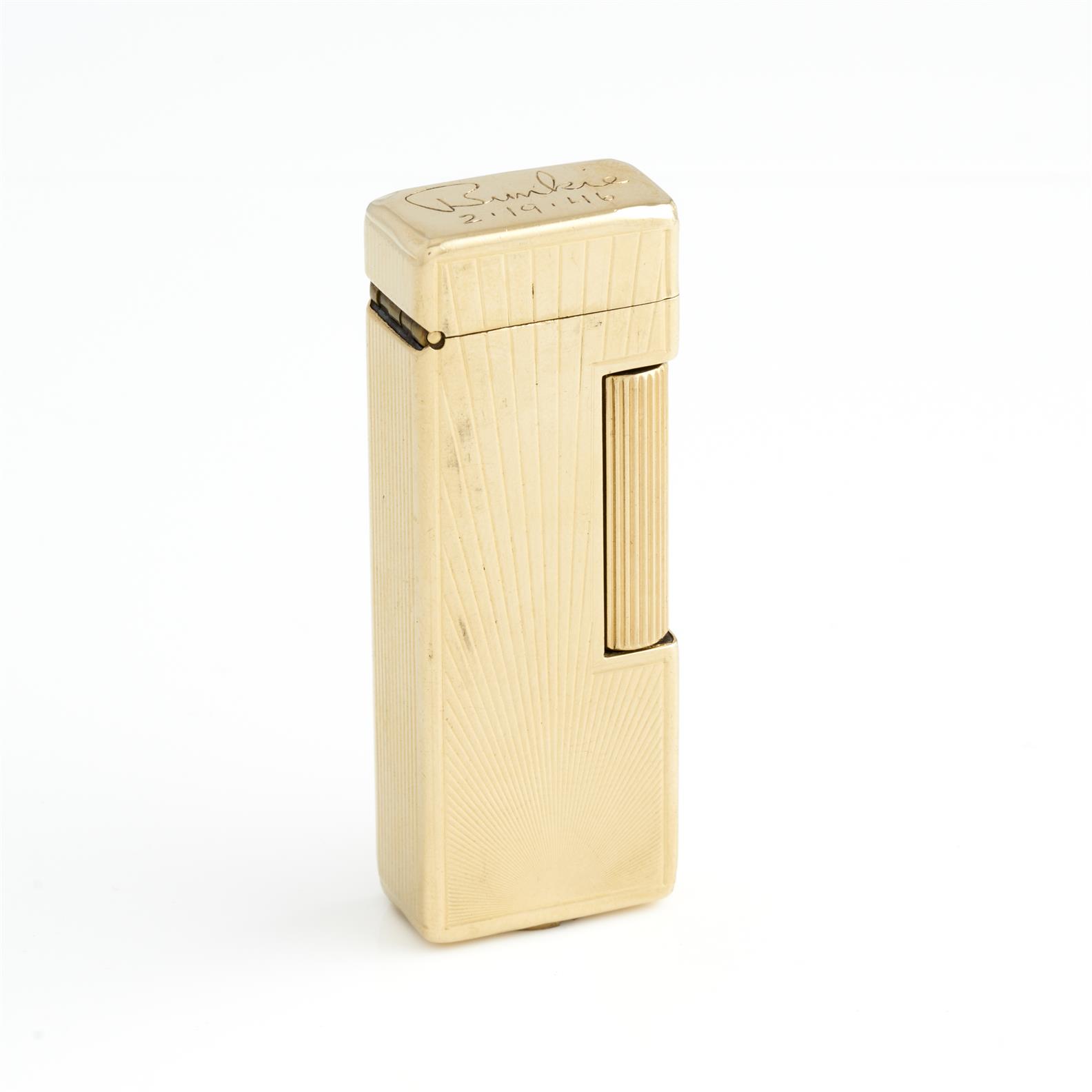 DUNHILL, A VINTAGE LIGHTER TO AN OUTER JACKET IN 18CT GOLD, FEATURING A WOVEN PATTERN