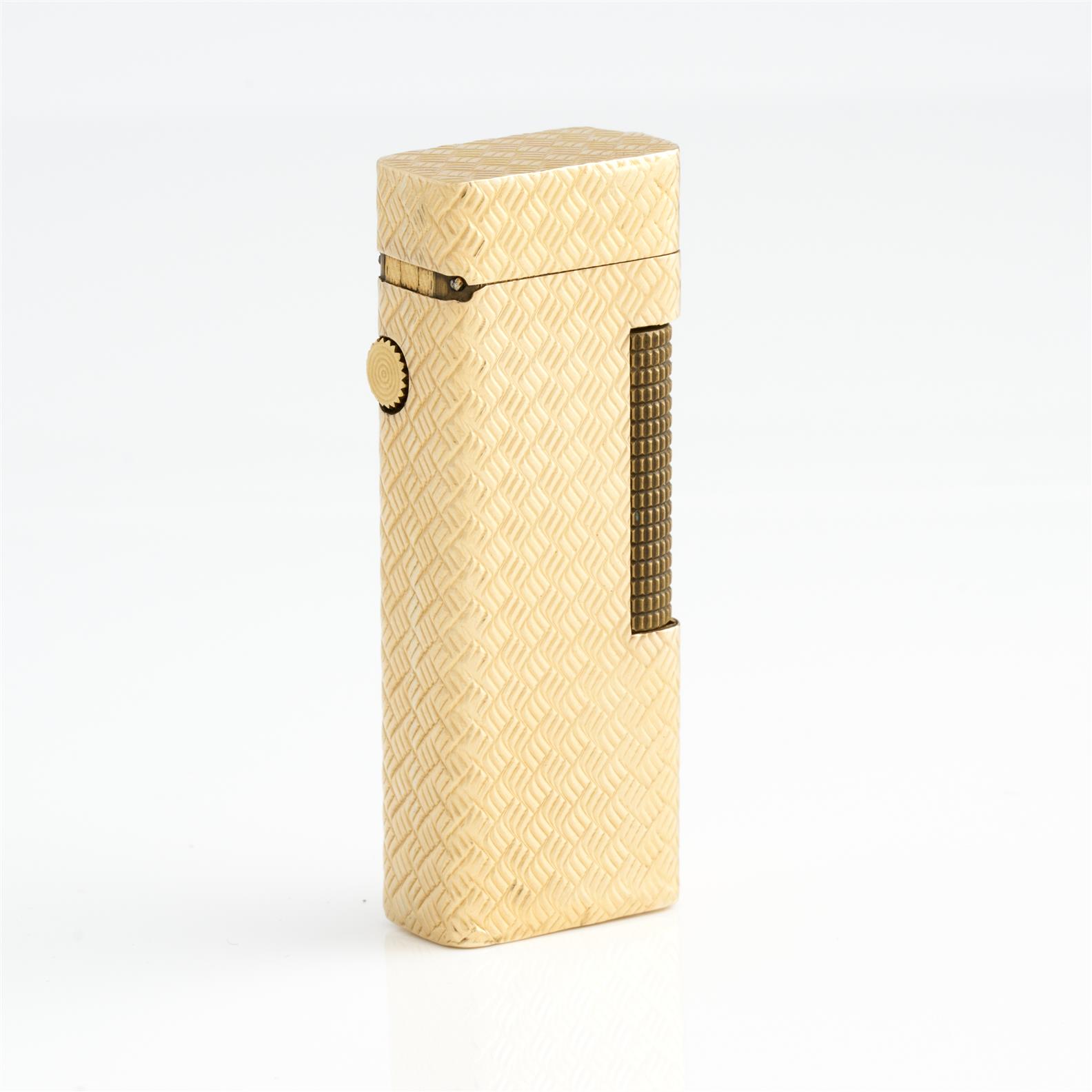 DUNHILL, A VINTAGE LIGHTER TO AN OUTER JACKET IN 18CT GOLD, FEATURING A WOVEN PATTERN