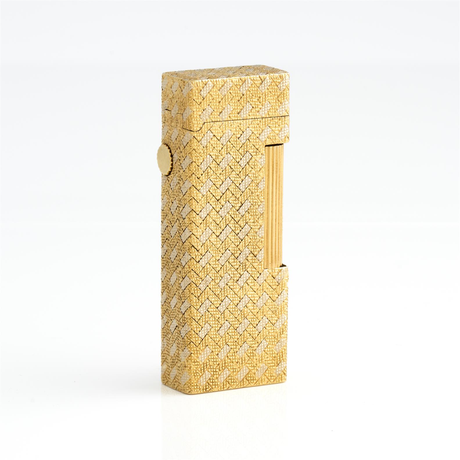 DUNHILL, A VINTAGE LIGHTER TO AN OUTER JACKET IN 18CT GOLD, FEATURING A WOVEN PATTERN
